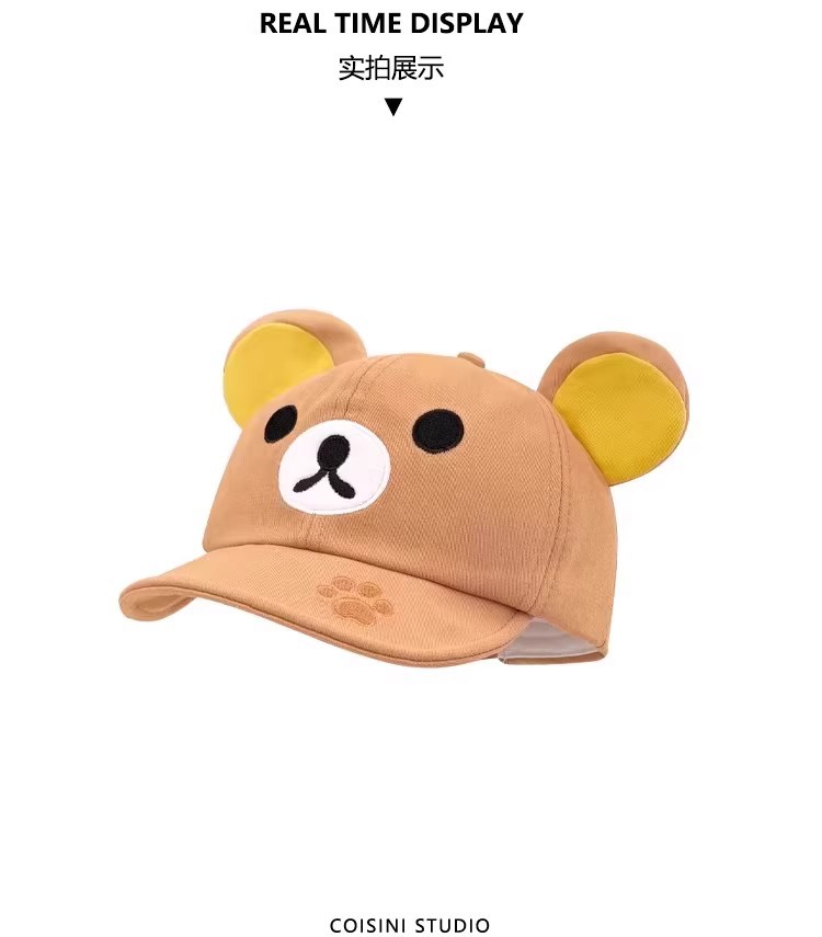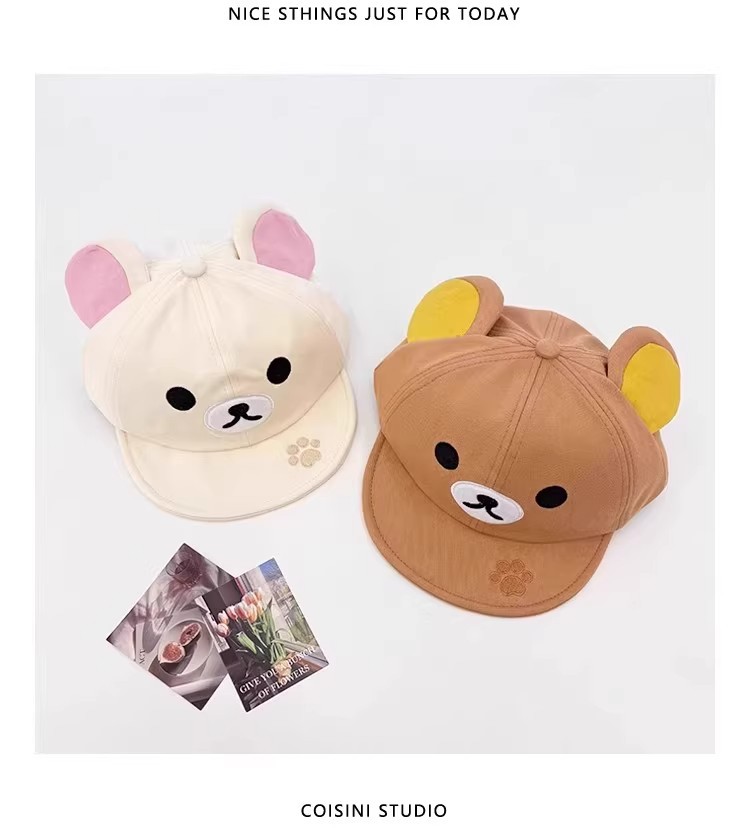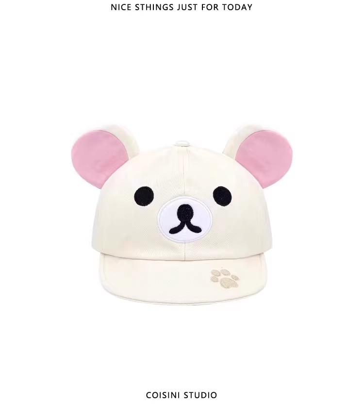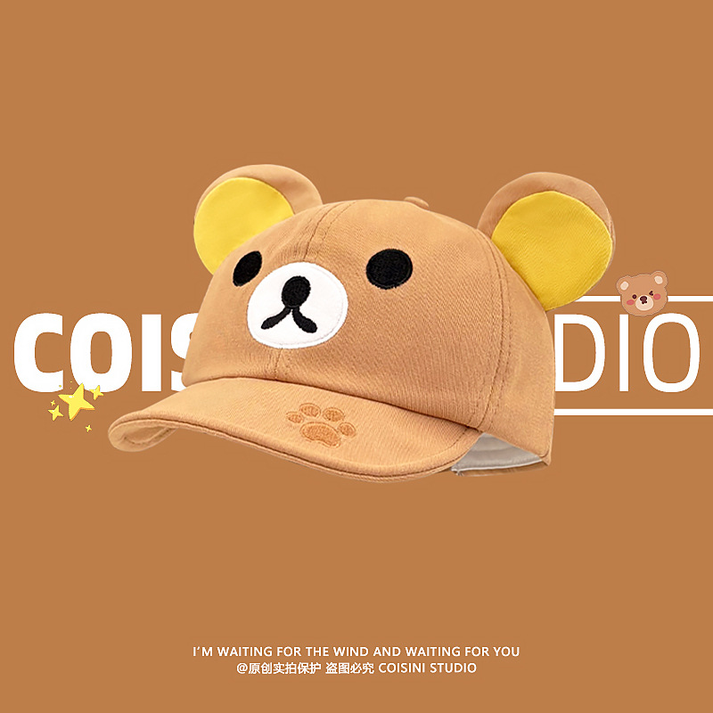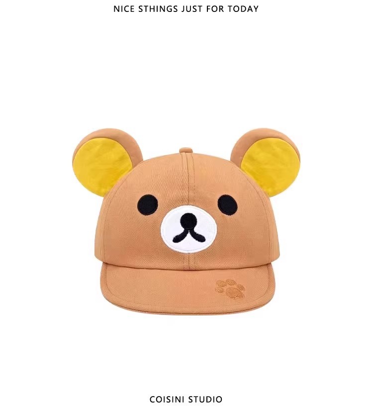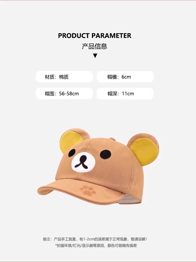 일본 귀여운 쿠마 리락쿠마 플립 엣지 자수 여성용 피크 캡 만화 봄 여름 자외선 차단 다용도 야구 모자스토어 가기