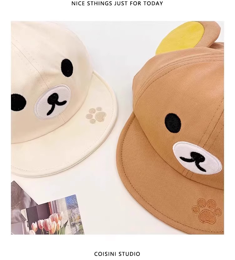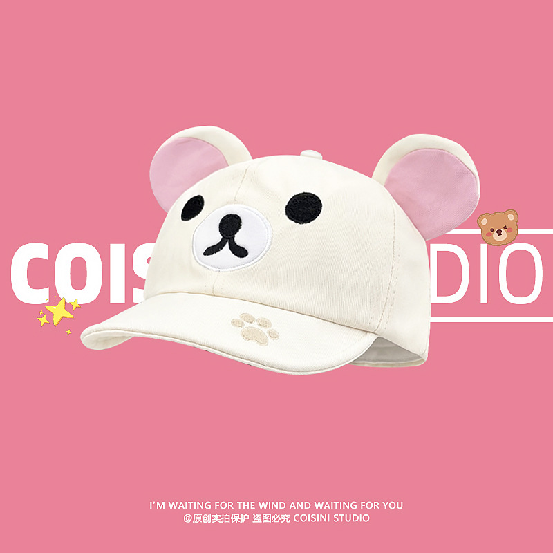 일본 귀여운 쿠마 리락쿠마 플립 엣지 자수 여성용 피크 캡 만화 봄 여름 자외선 차단 다용도 야구 모자