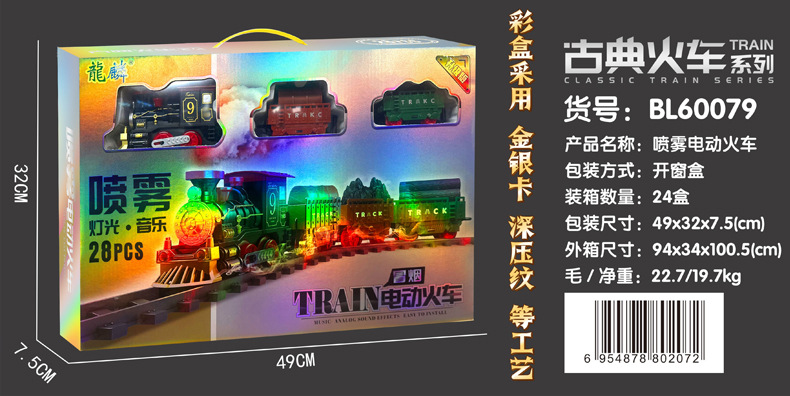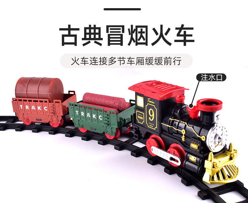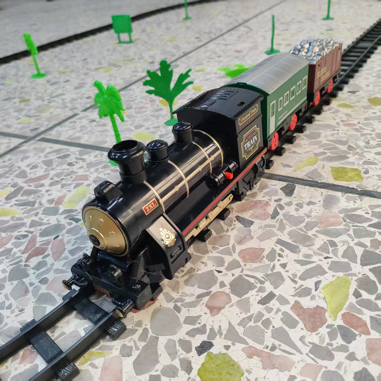새로운 복고풍 증기 기관차 트랙 장난감 대형 상자 여러 차량 클래식 기차 전기 트랙 자동차 도매스토어 가기