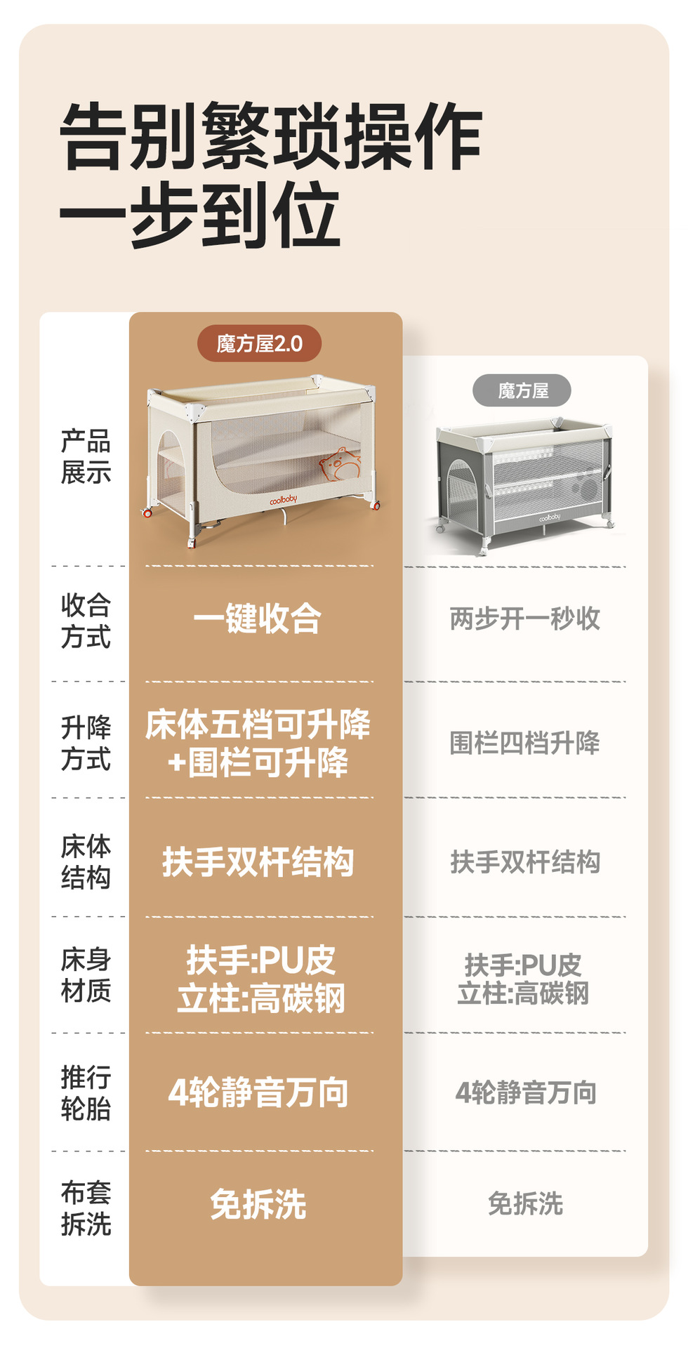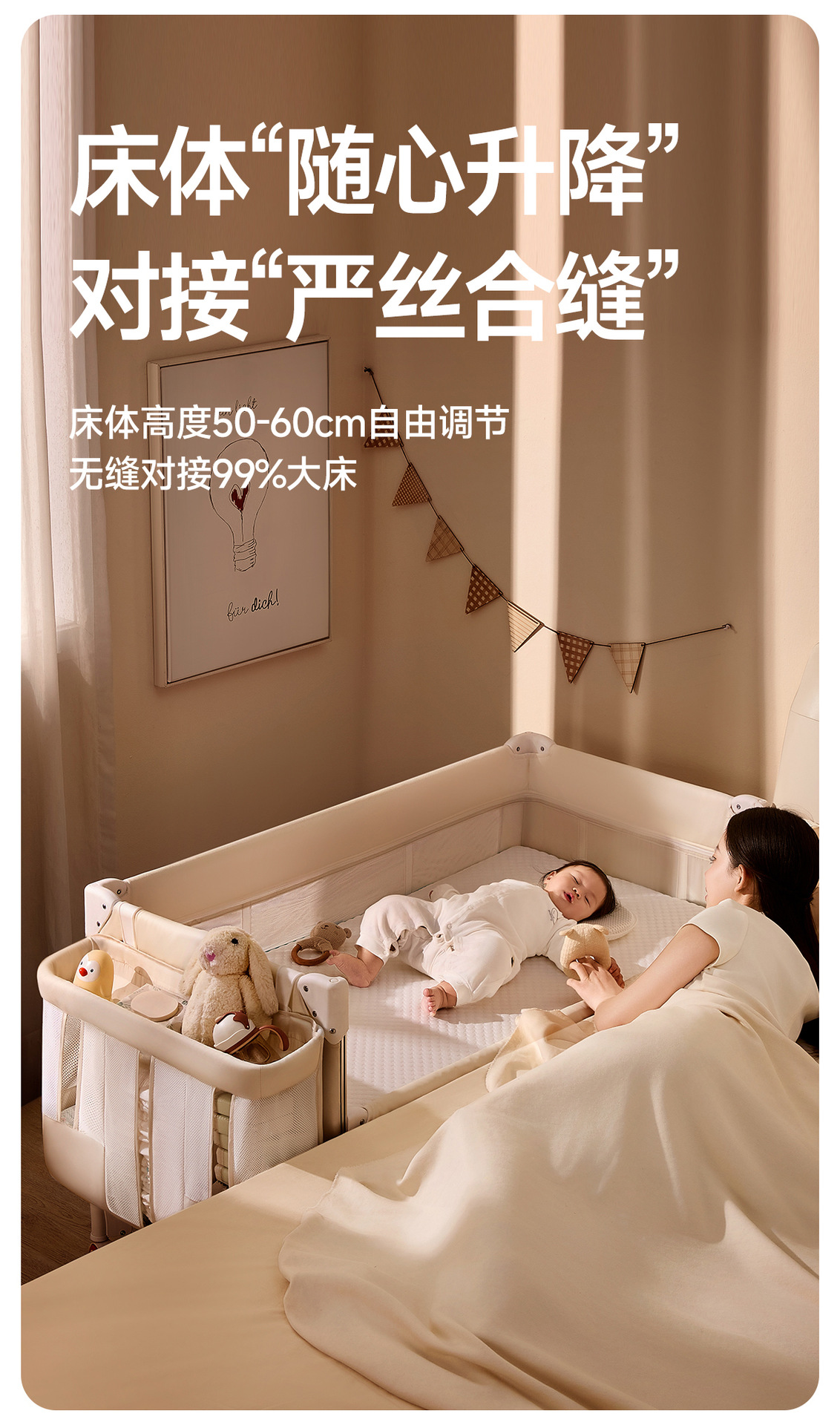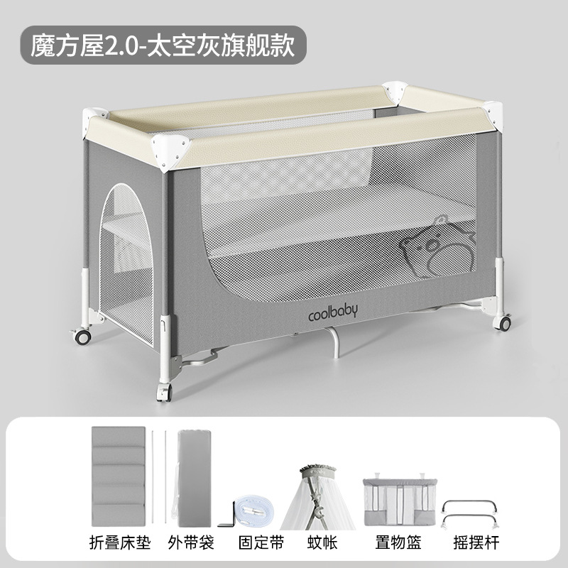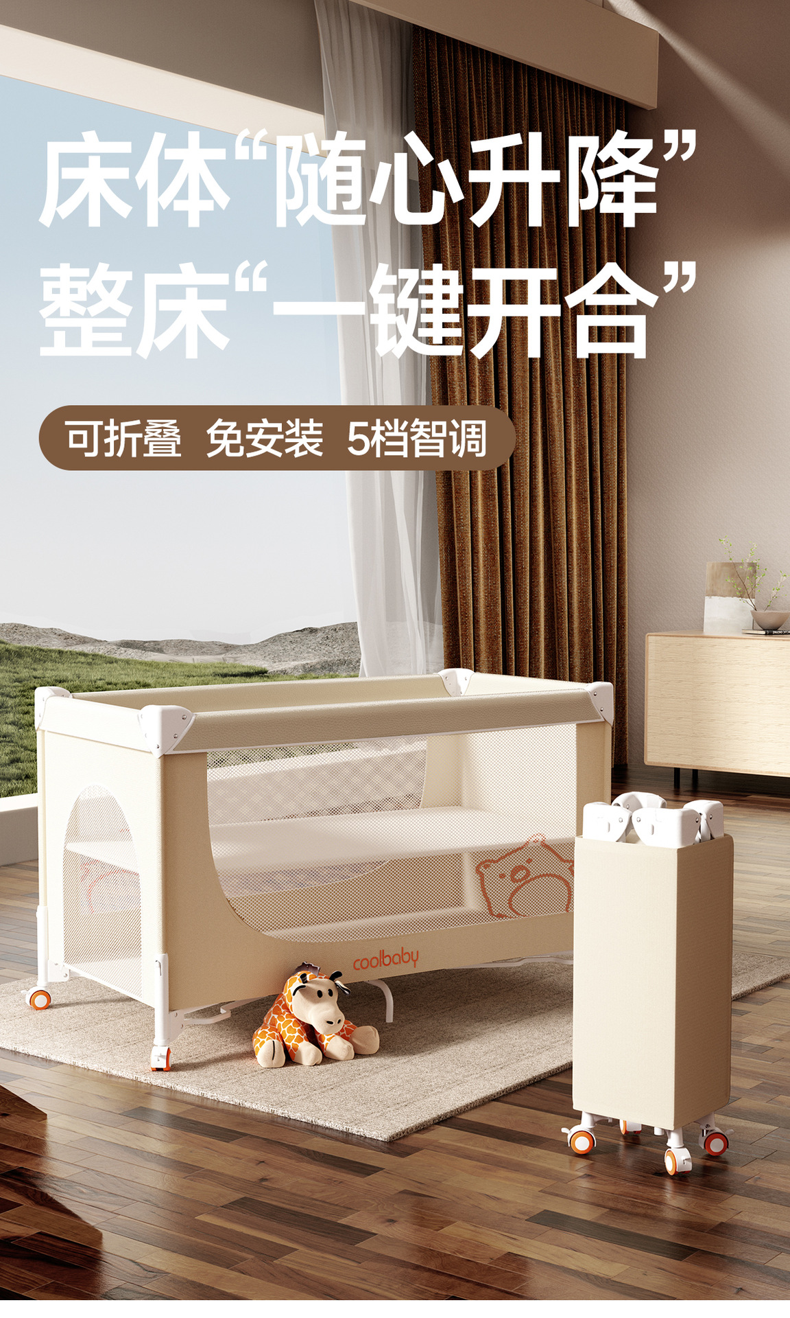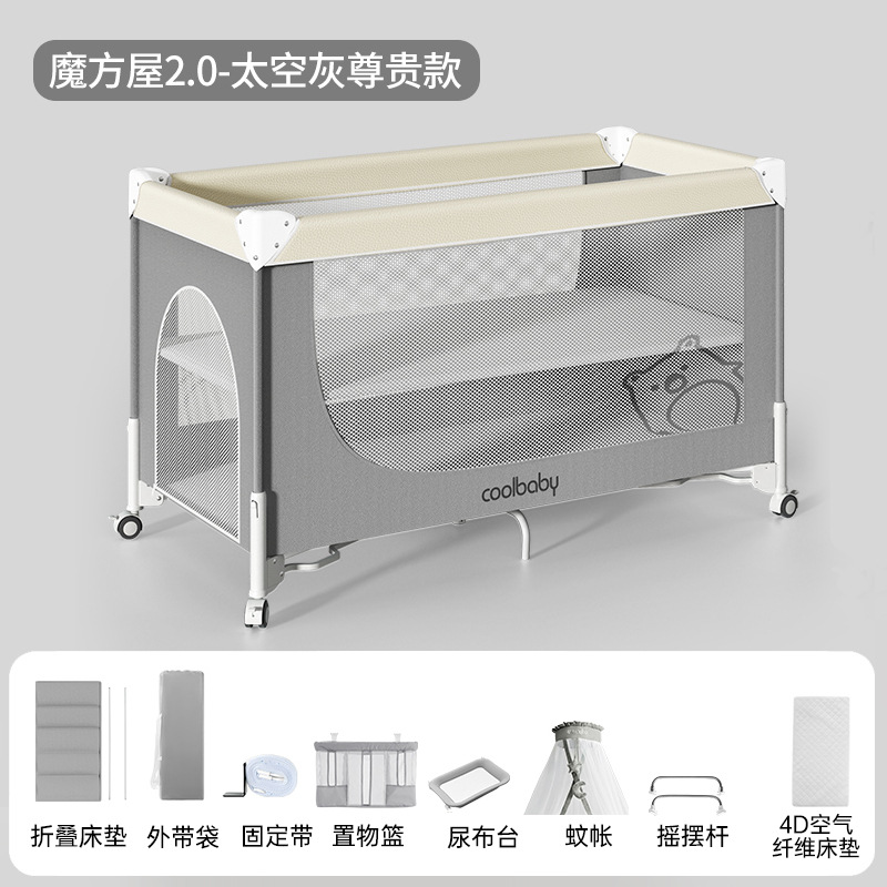 간단한 유아용 침대, 높이 조절 가능, 원활한 접합, 원클릭 개폐, 다기능 휴대용 아기 침대 게임스토어 가기