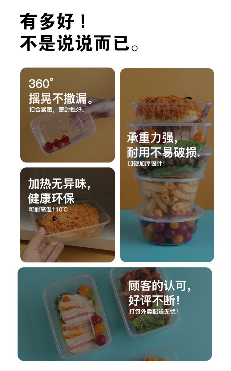 일회용 식사 상자 사각 상자 플라스틱 두꺼운 투명 테이크 아웃 포장 도시락 둥근 도시락 패스트 푸드 수프 그릇 뚜껑스토어 가기