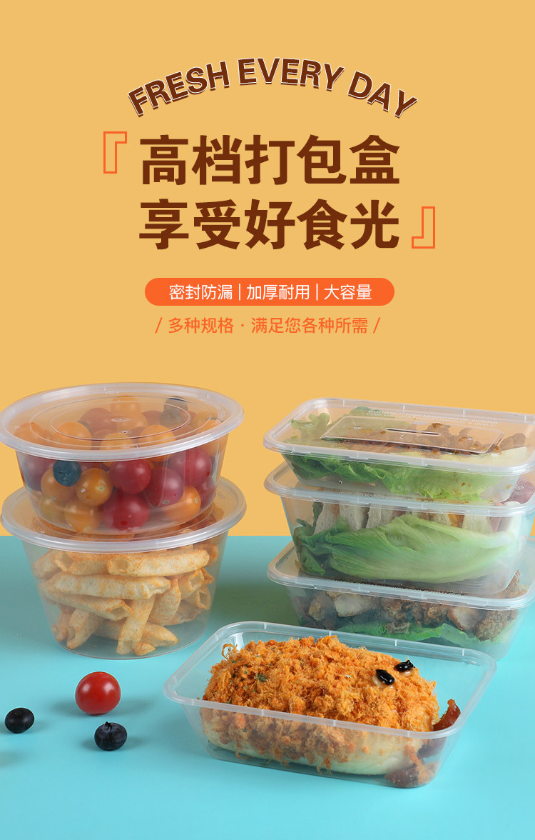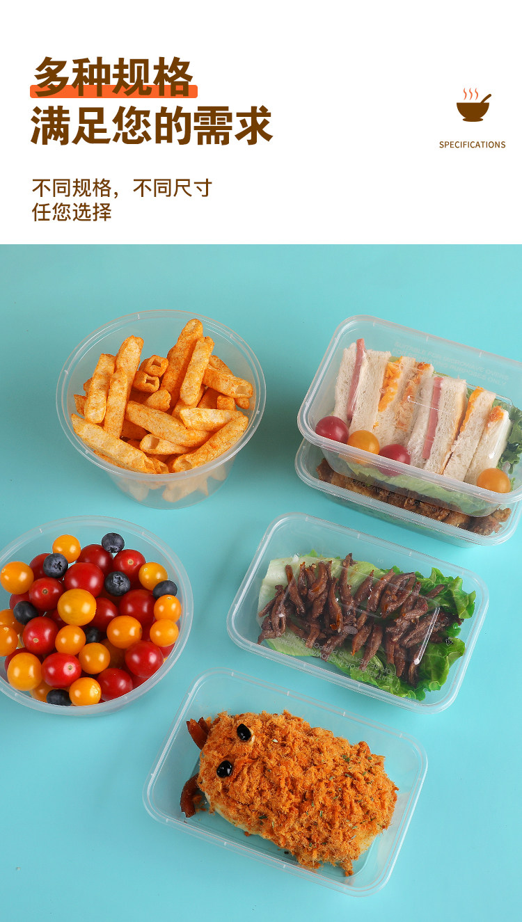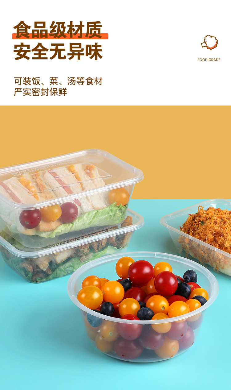 일회용 식사 상자 사각 상자 플라스틱 두꺼운 투명 테이크 아웃 포장 도시락 둥근 도시락 패스트 푸드 수프 그릇 뚜껑
