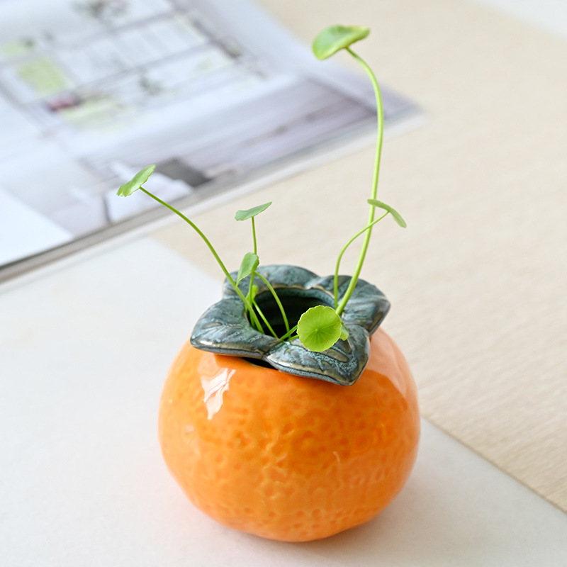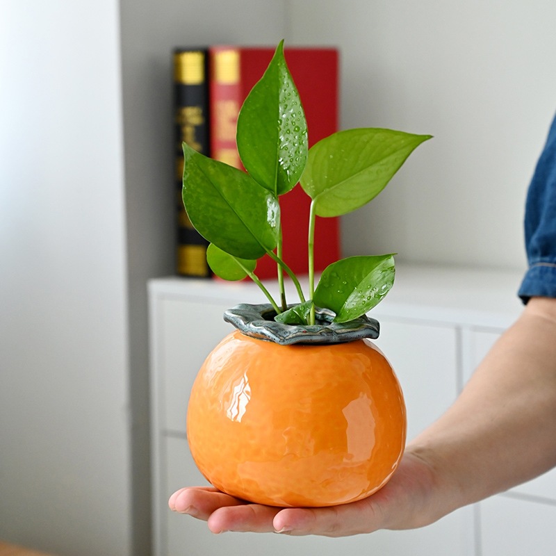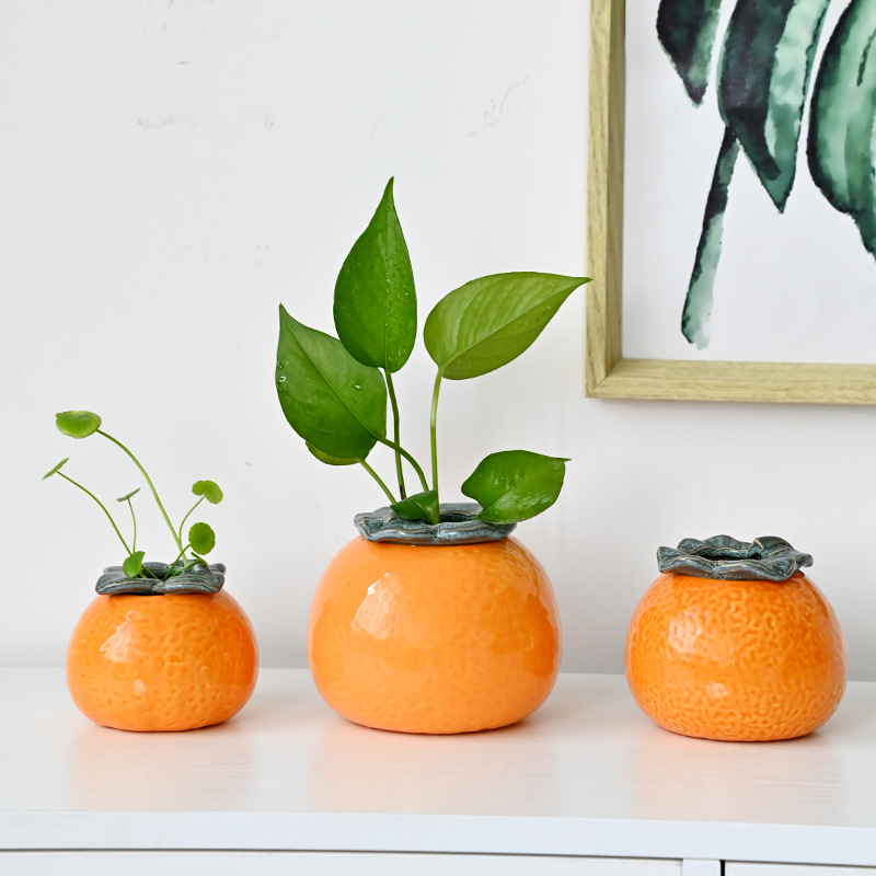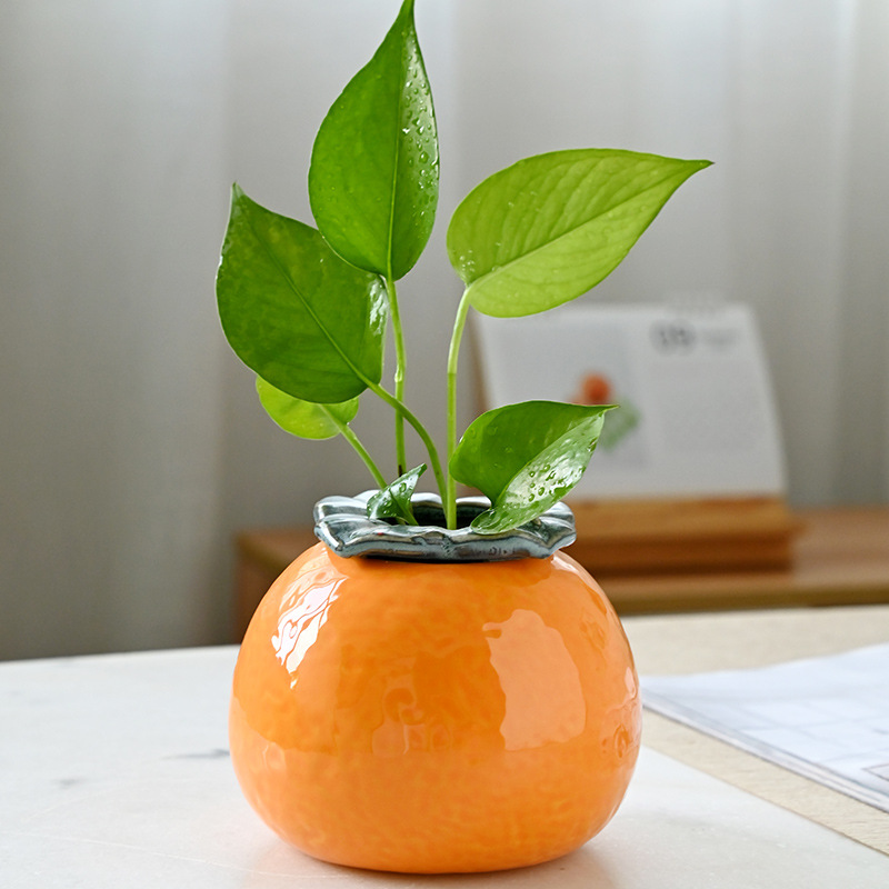 오렌지 수경 화분, 세라믹 오렌지 꽃병, 창의적인 꽃꽂이, 홈 거실 장식품, 선물, 조각된 로고