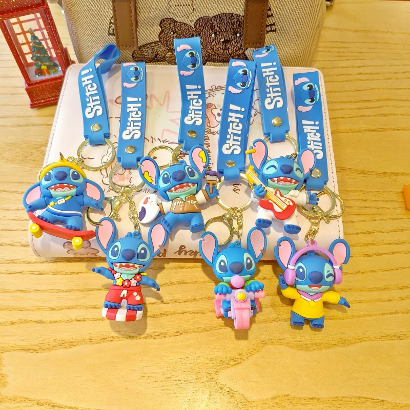 새로운 창조적 인 만화 스티치 키 체인 스트리트 스티치 인형 학교 가방 펜던트 액세서리 키 체인 도매스토어 가기