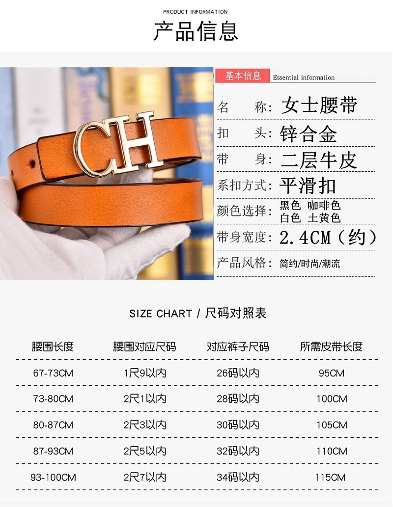 새로운 스타일의 소녀 벨트 CH 문자 청소년 인터넷 연예인 가죽 벨트 숙녀 2024 패션 바지 벨트 Douyin Cross-Border스토어 가기
