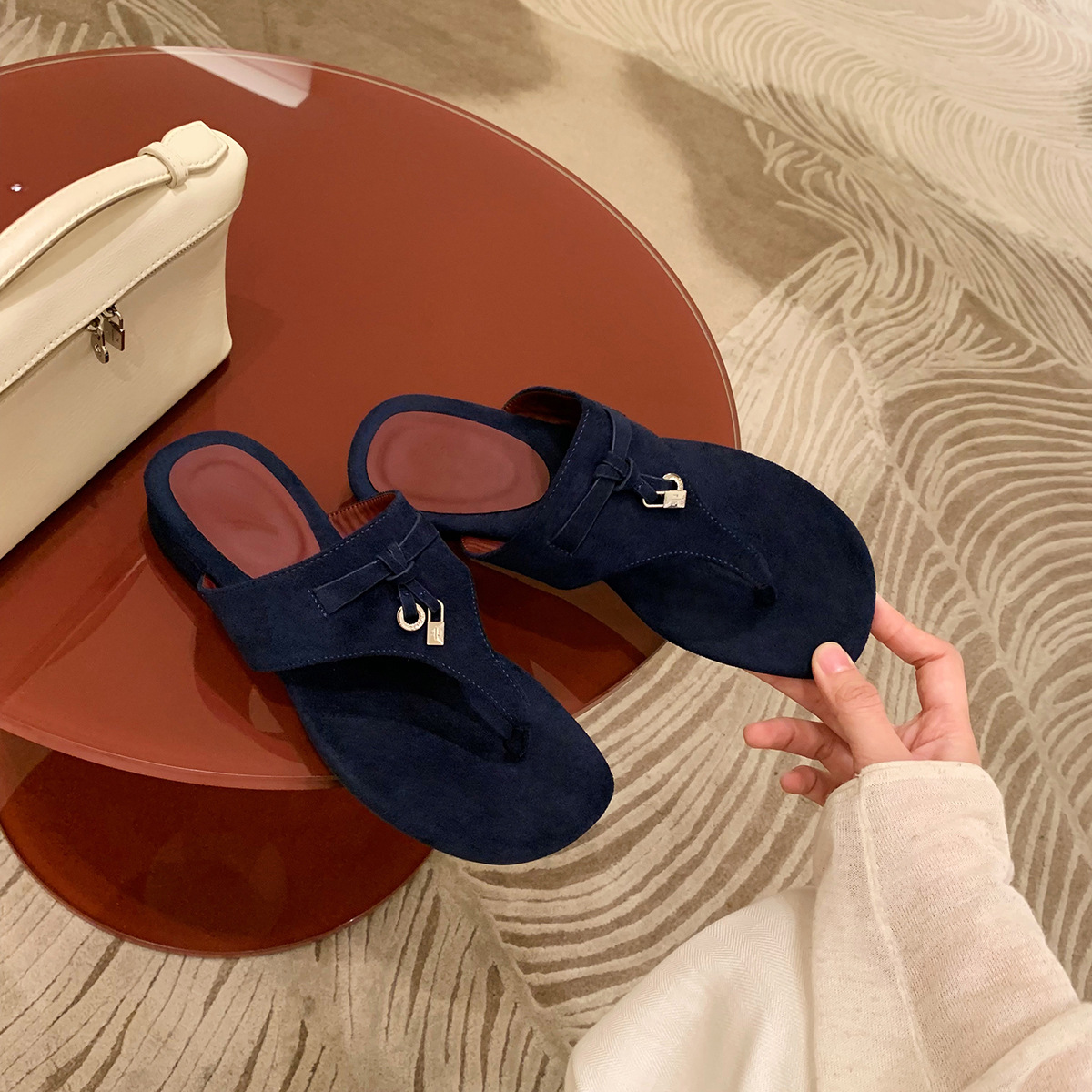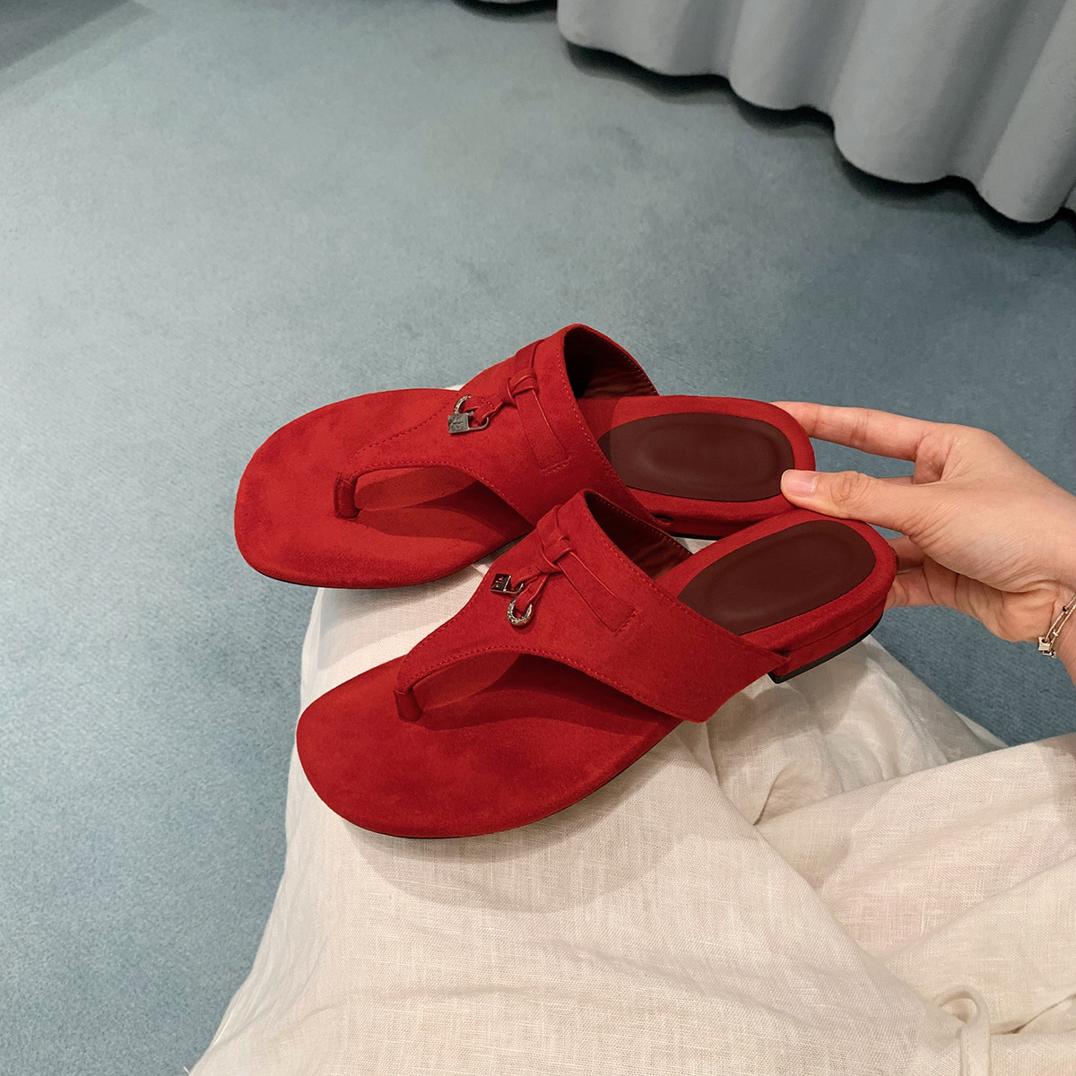 2025 아름다운 프렌치 헤링본 다용도 패셔너블 플랫 아우터 여성 여름 요정 슬리퍼 캐주얼 슬리퍼스토어 가기
