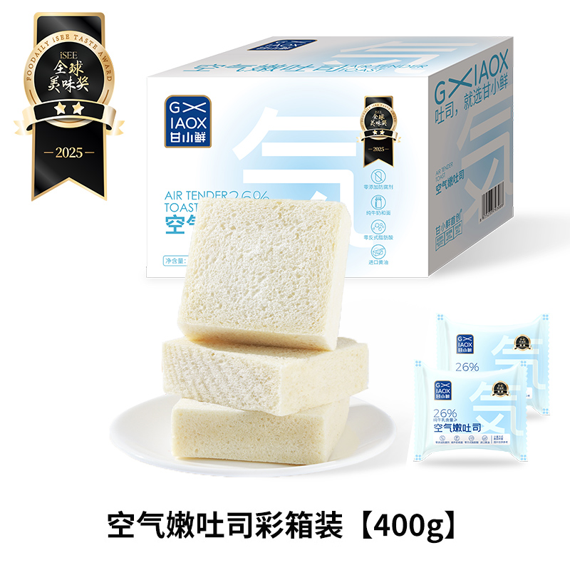 간샤오시안 에어 텐더 토스트 엣지리스 토스트 빵 오리지널 밀크 두껍게 썬 토스트 슬라이스 학생 아침 식사 한 박스