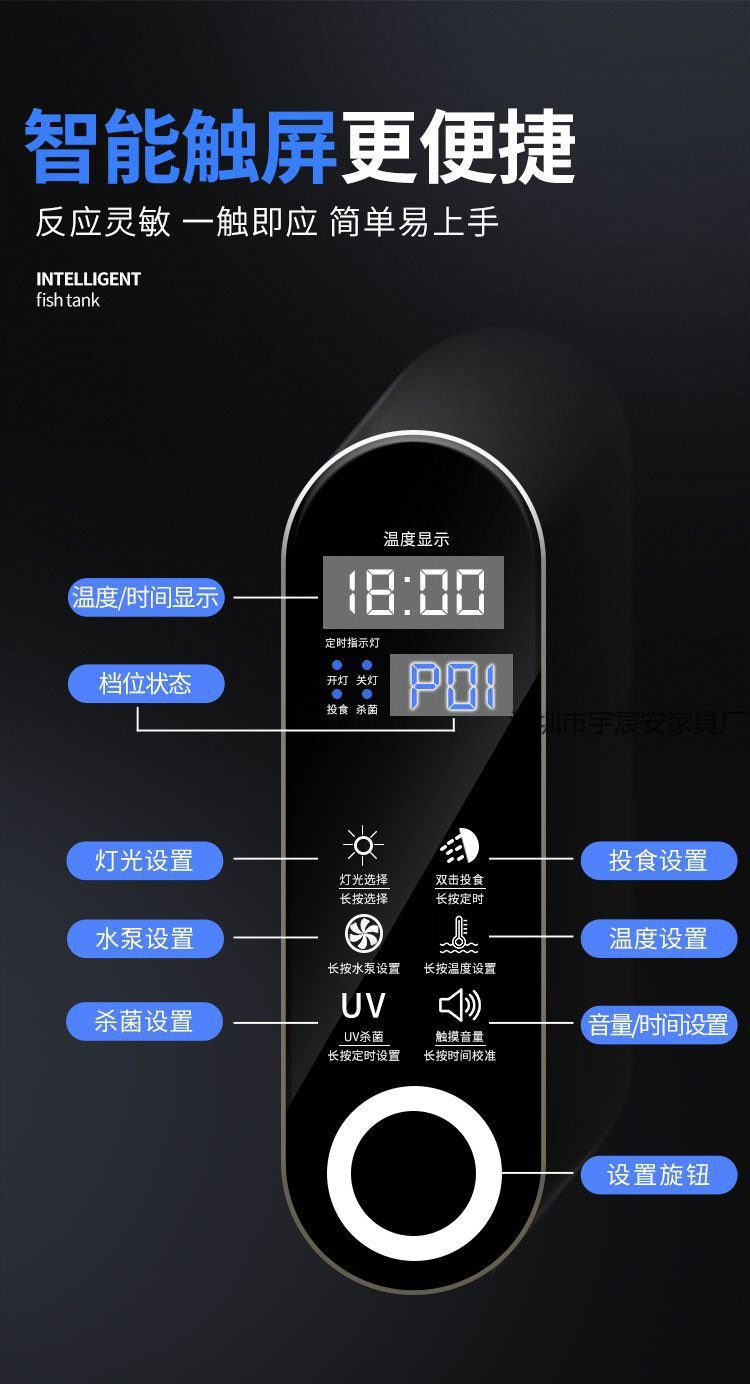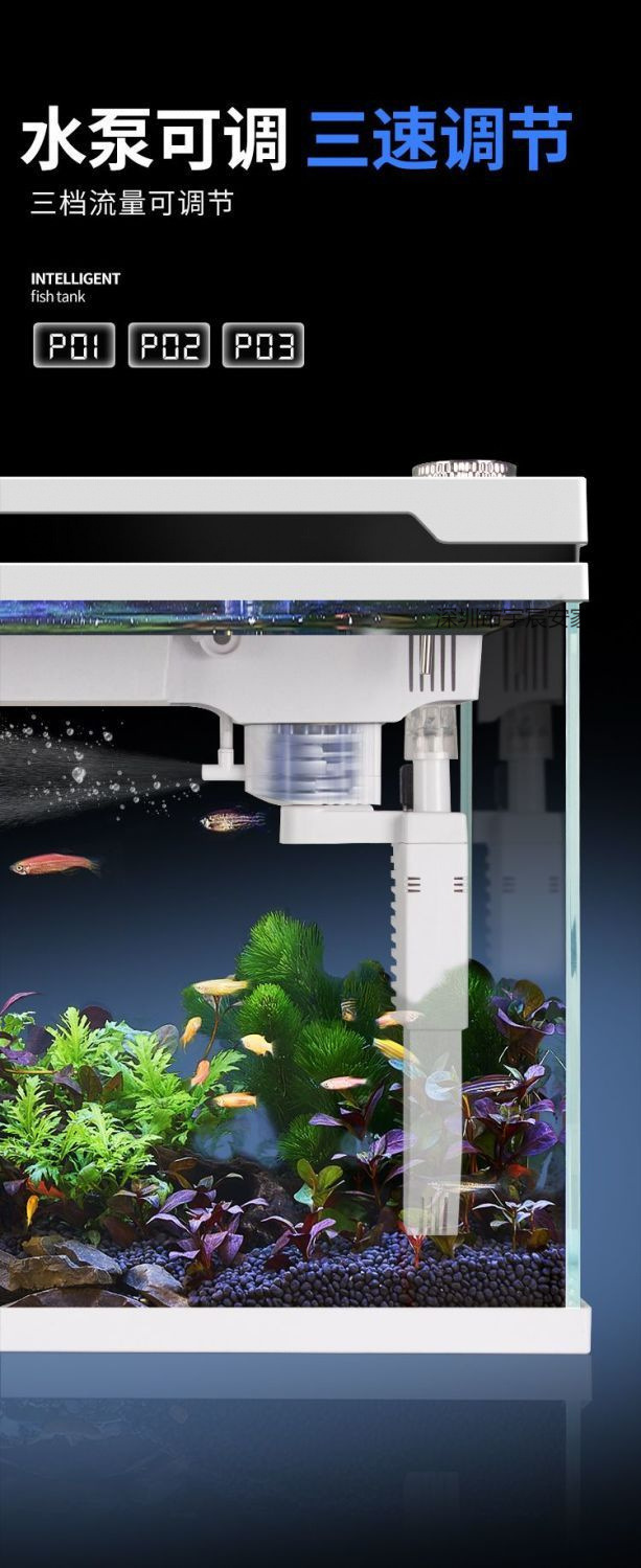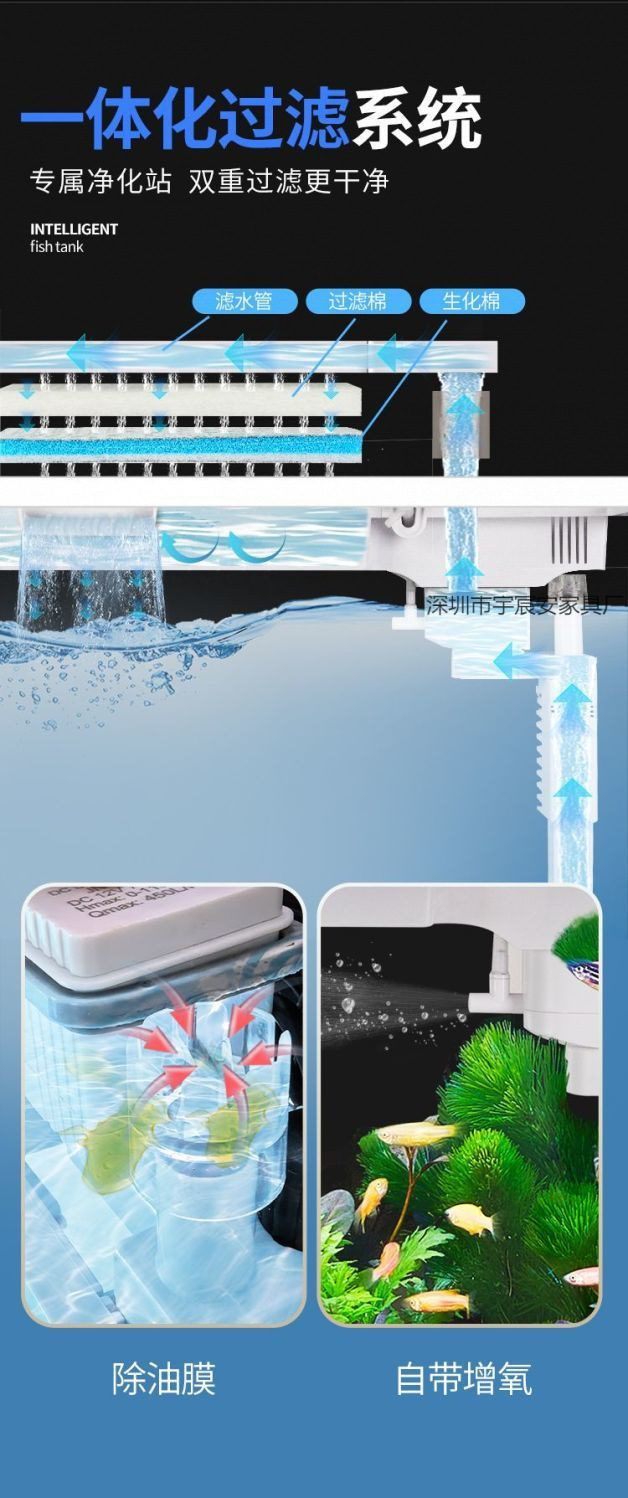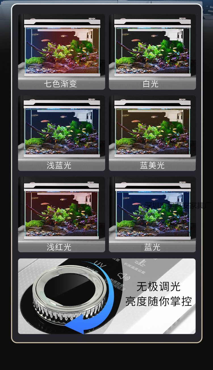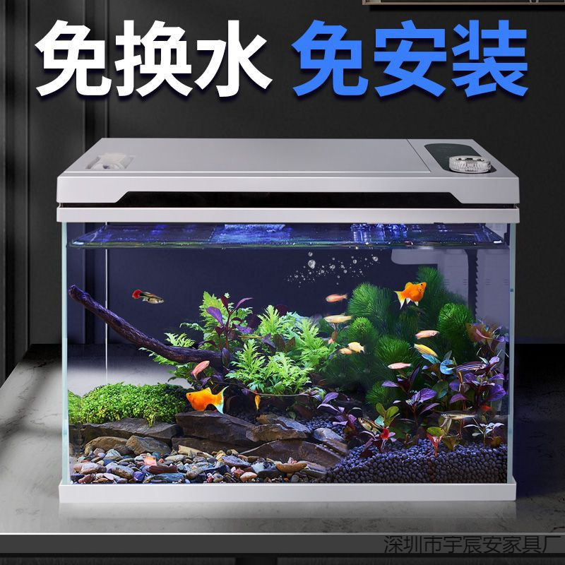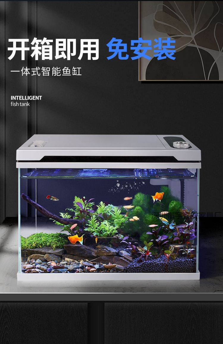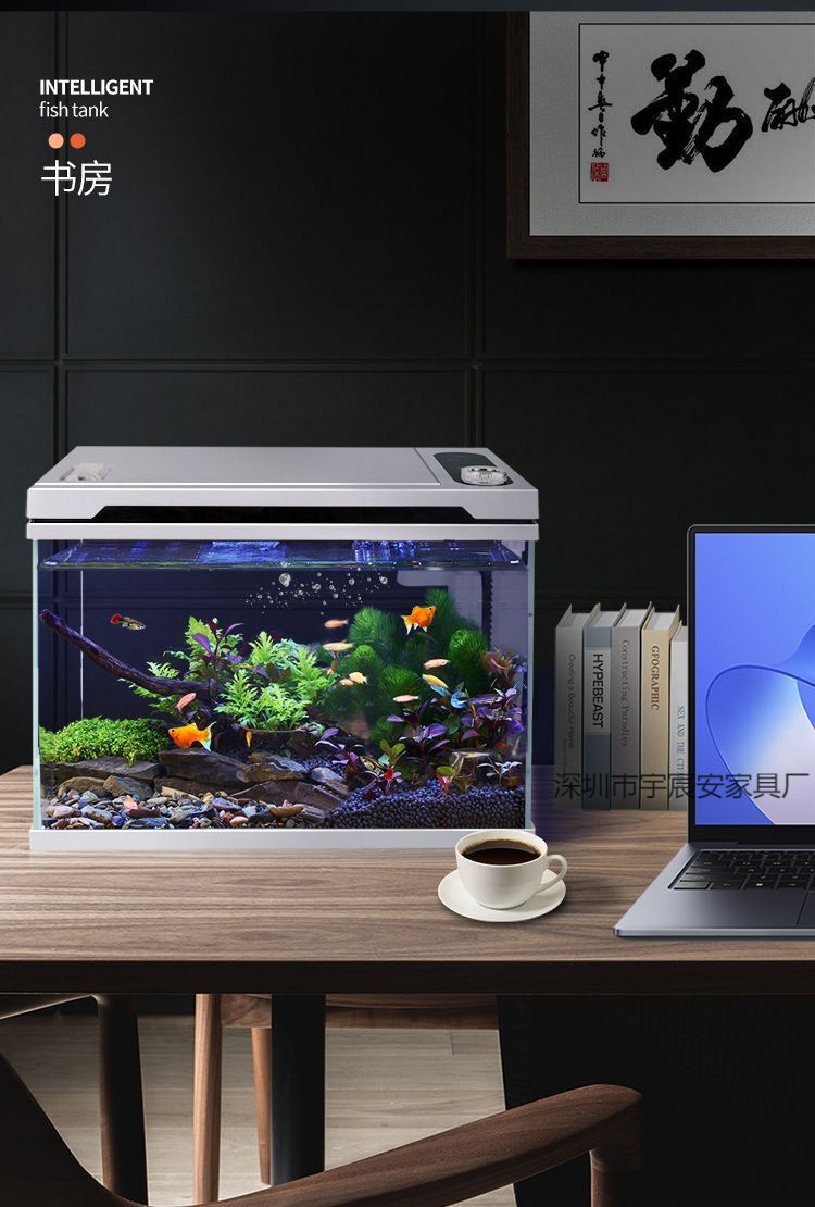 Yuleduo 초백색 유리 데스크탑 수조 설치가 필요 없는 지능형 산소 공급 사무실 홈 올인원 수조스토어 가기