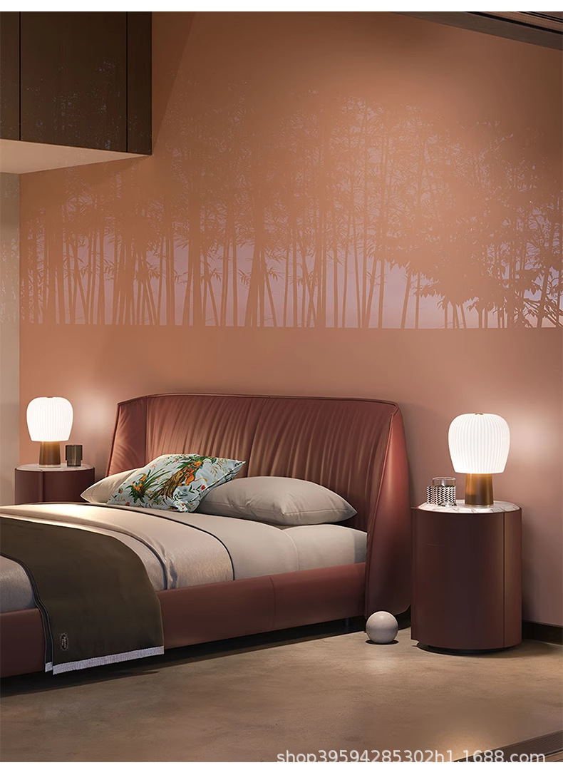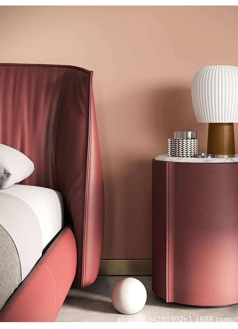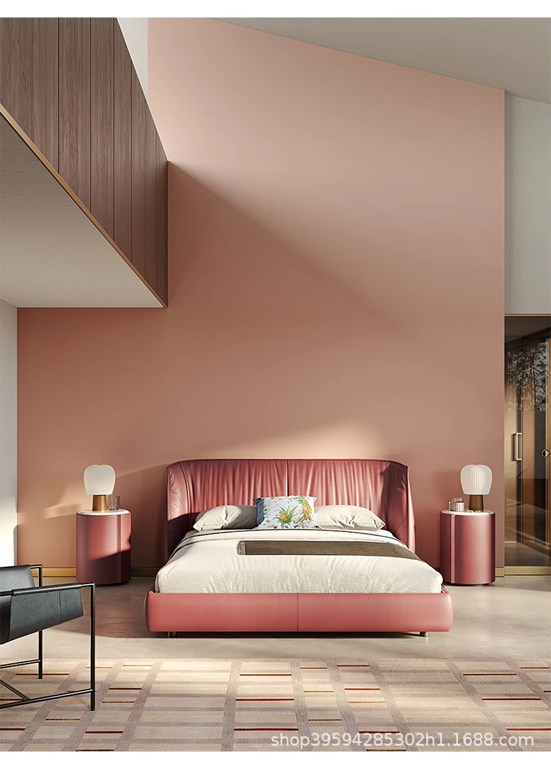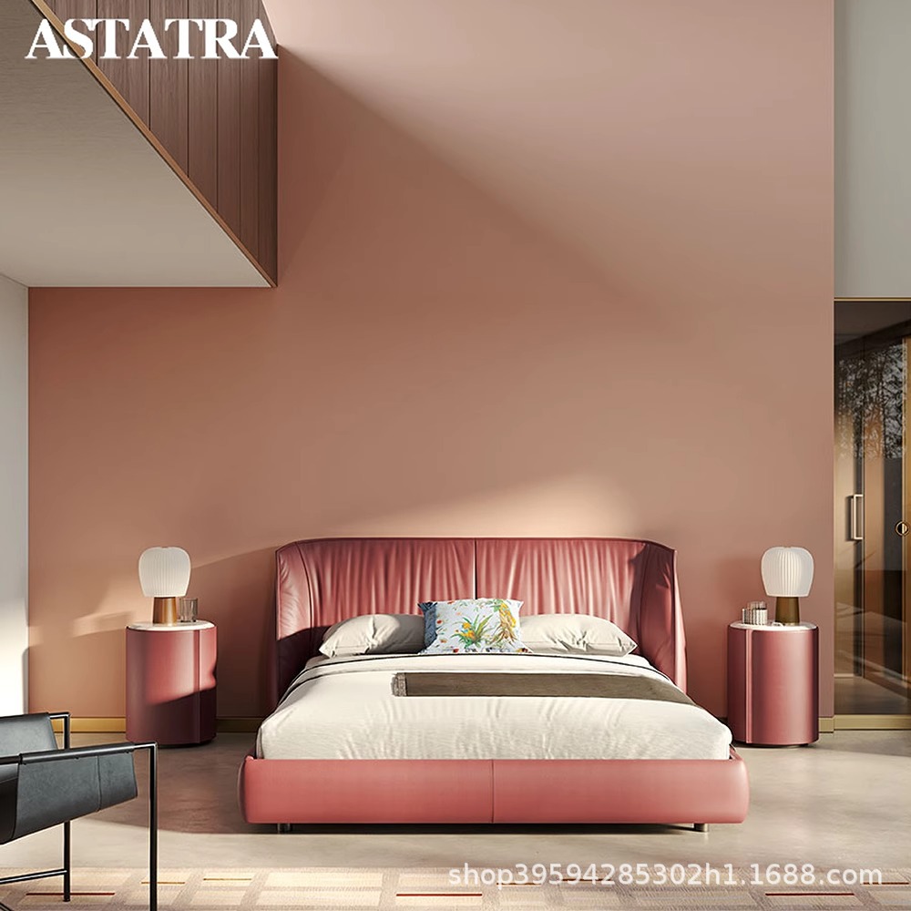새로운 이탈리아 미니멀리스트 가죽 침대 Archibald 마스터 침실 하이 엔드 1.8m 침대 대형 플랫 플랫 더블 침대