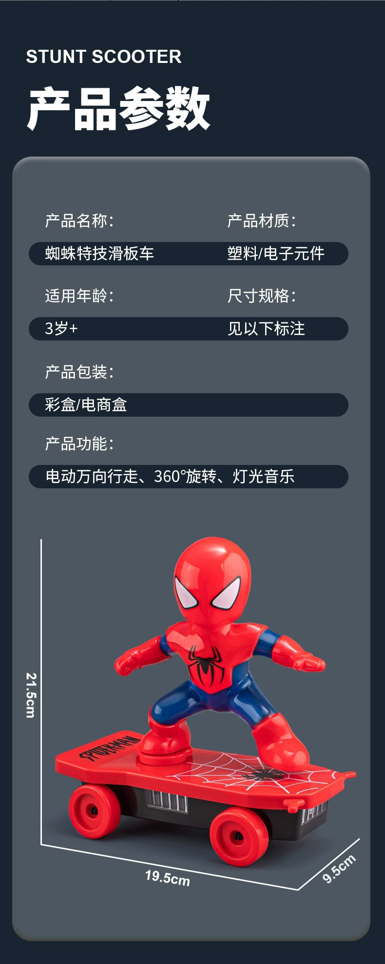 라이트 360도 스파이더 스케이트보드 롤링 스파이더맨 스턴트 스파이더맨 스쿠터 어린이 장난감