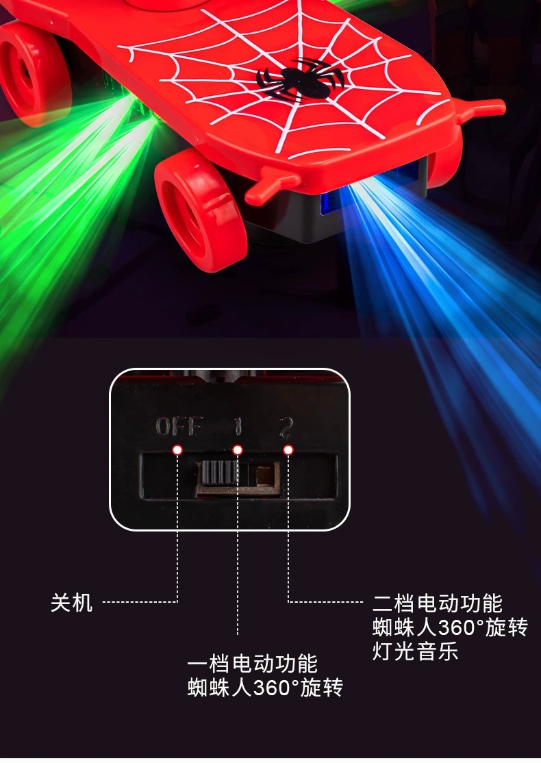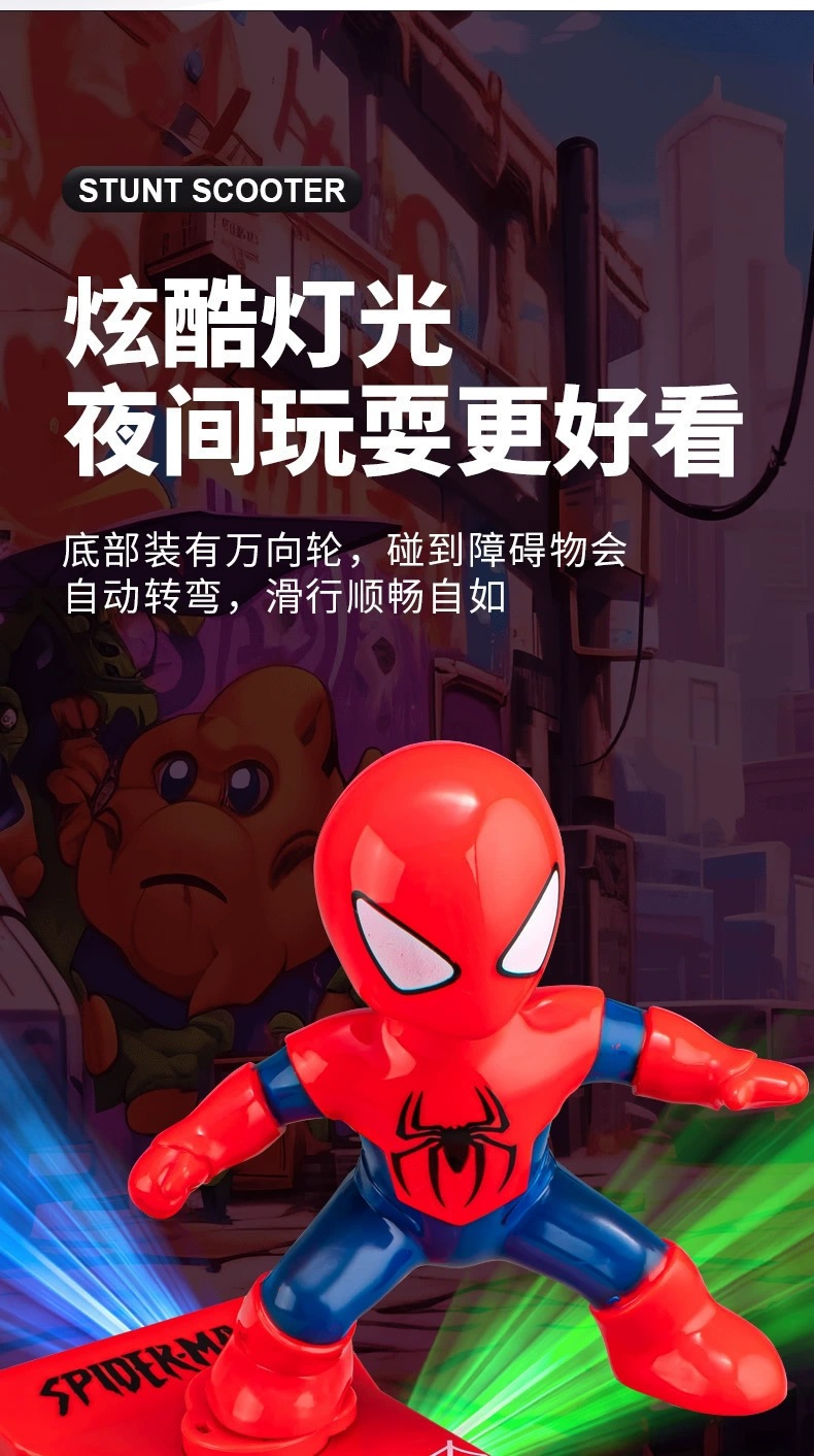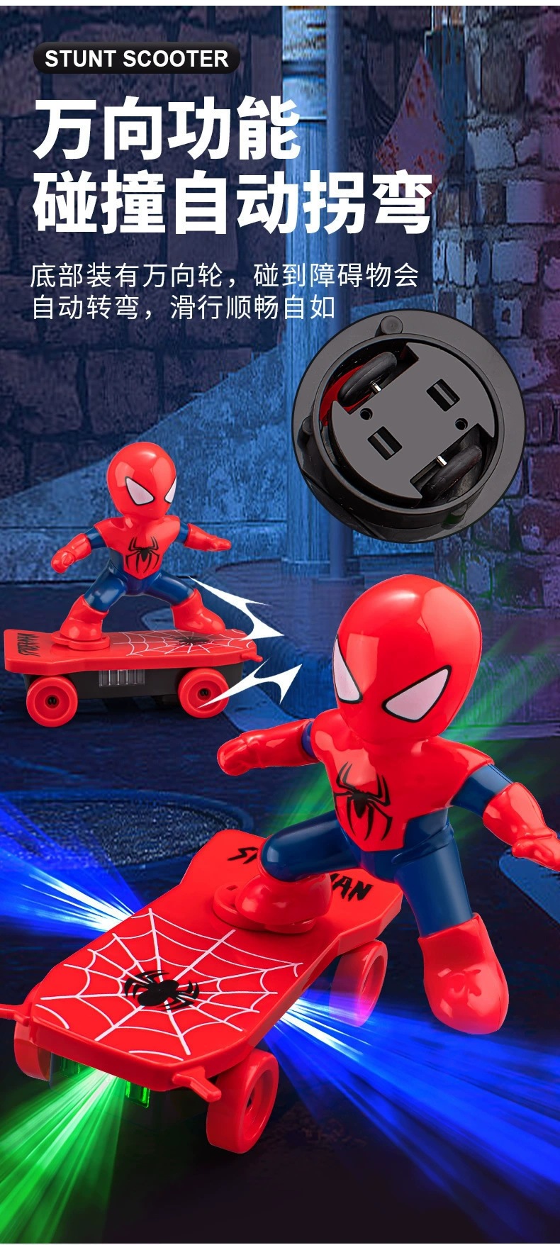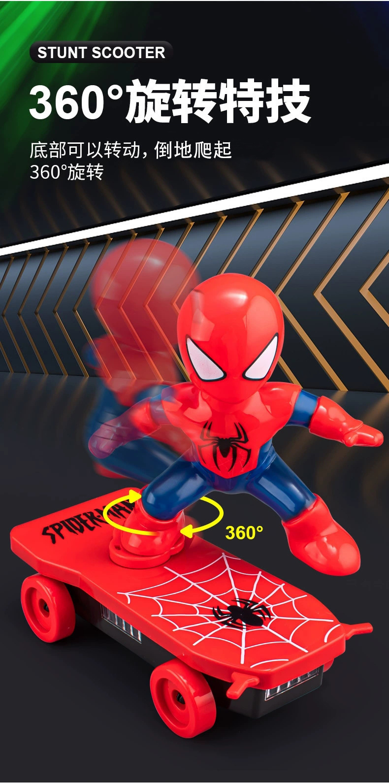 라이트 360도 스파이더 스케이트보드 롤링 스파이더맨 스턴트 스파이더맨 스쿠터 어린이 장난감스토어 가기