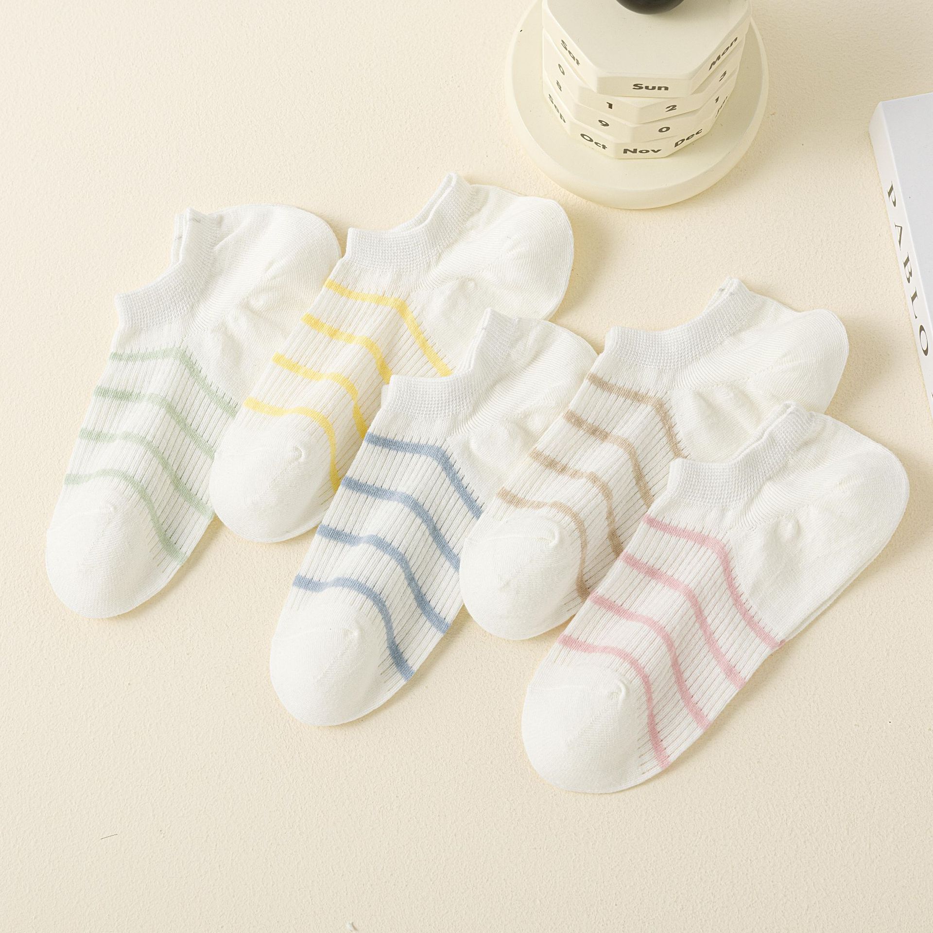 2025 새로운 줄무늬 양말 여성 봄, 여름 초박형 ins 트렌디 코튼 한국어 버전 일본식 컬러 여름 보이지 않는 양말스토어 가기