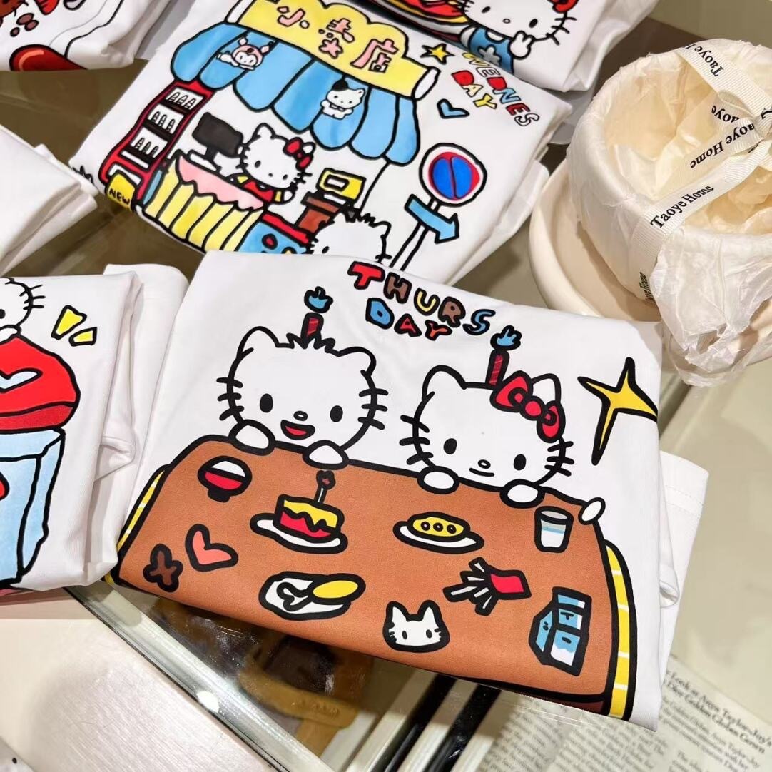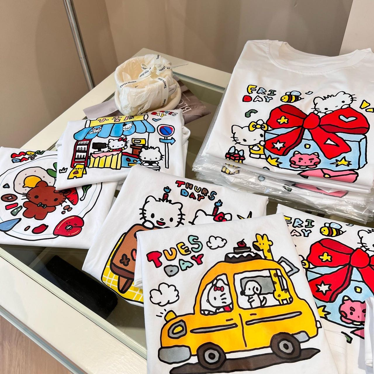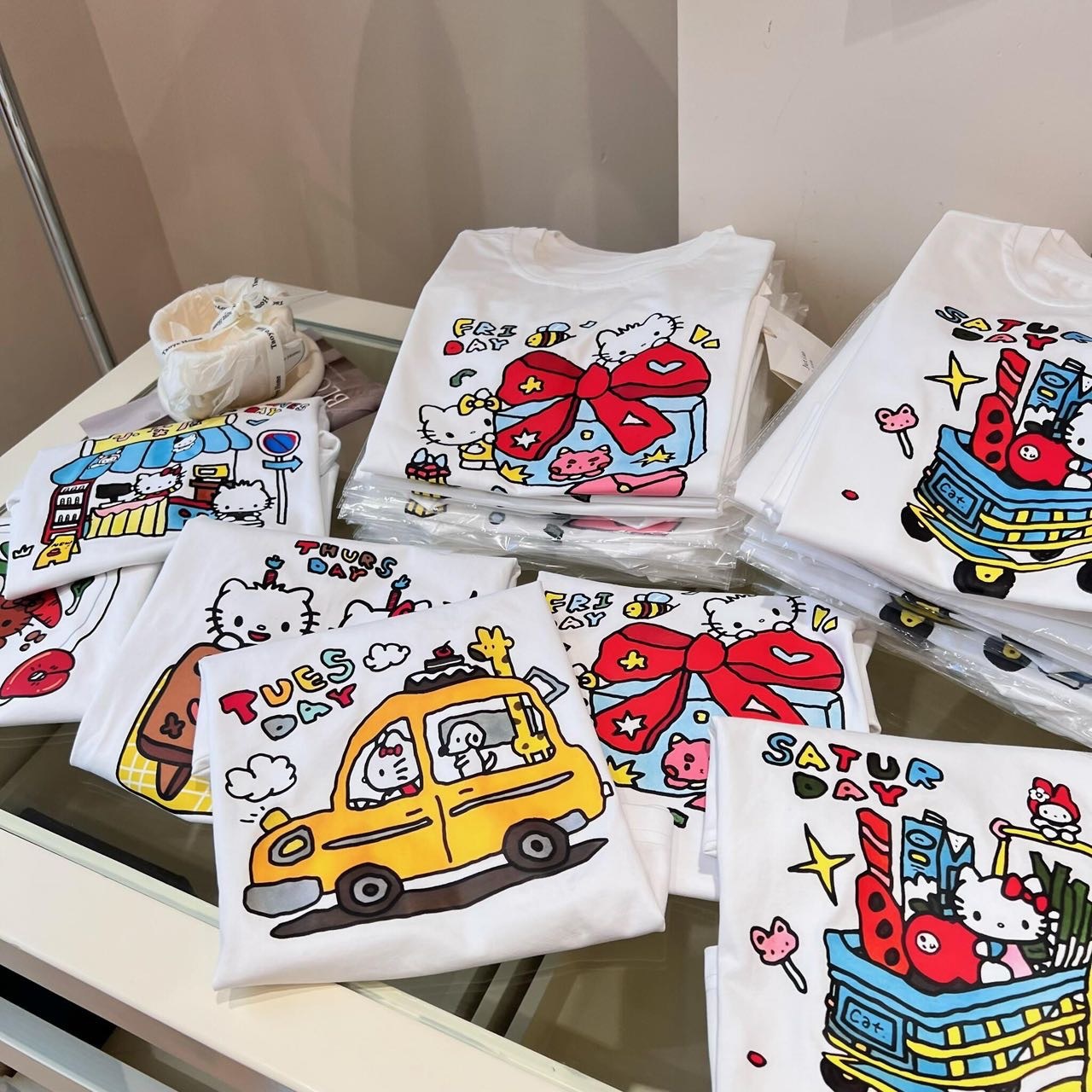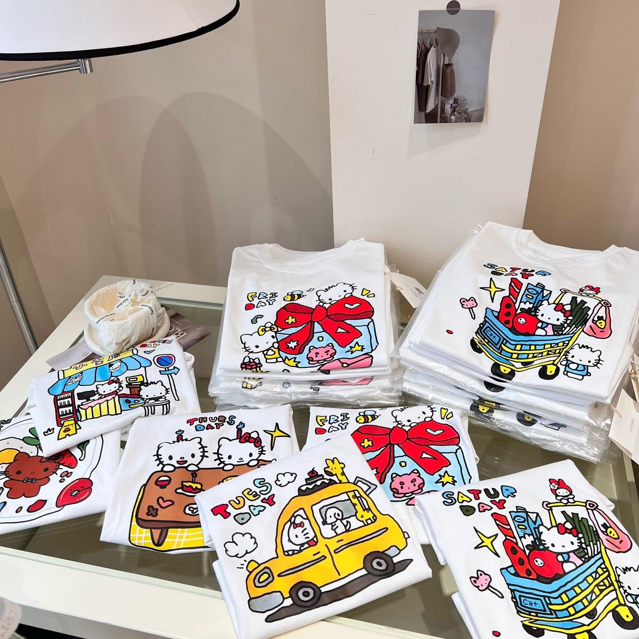 한국 여자 여름 만화 인쇄 유행 반팔 Kt 고양이 멀티 컬러 티셔츠스토어 가기