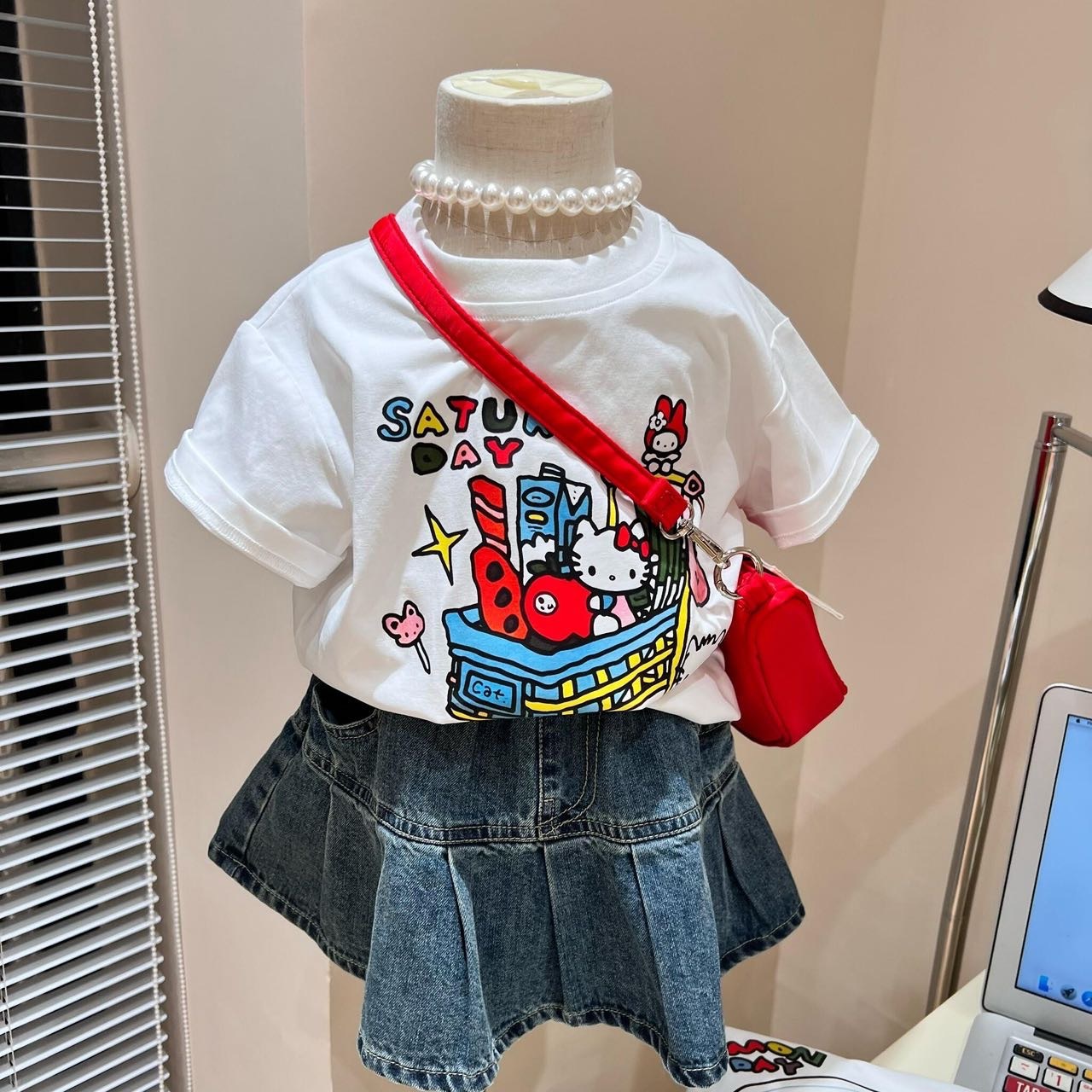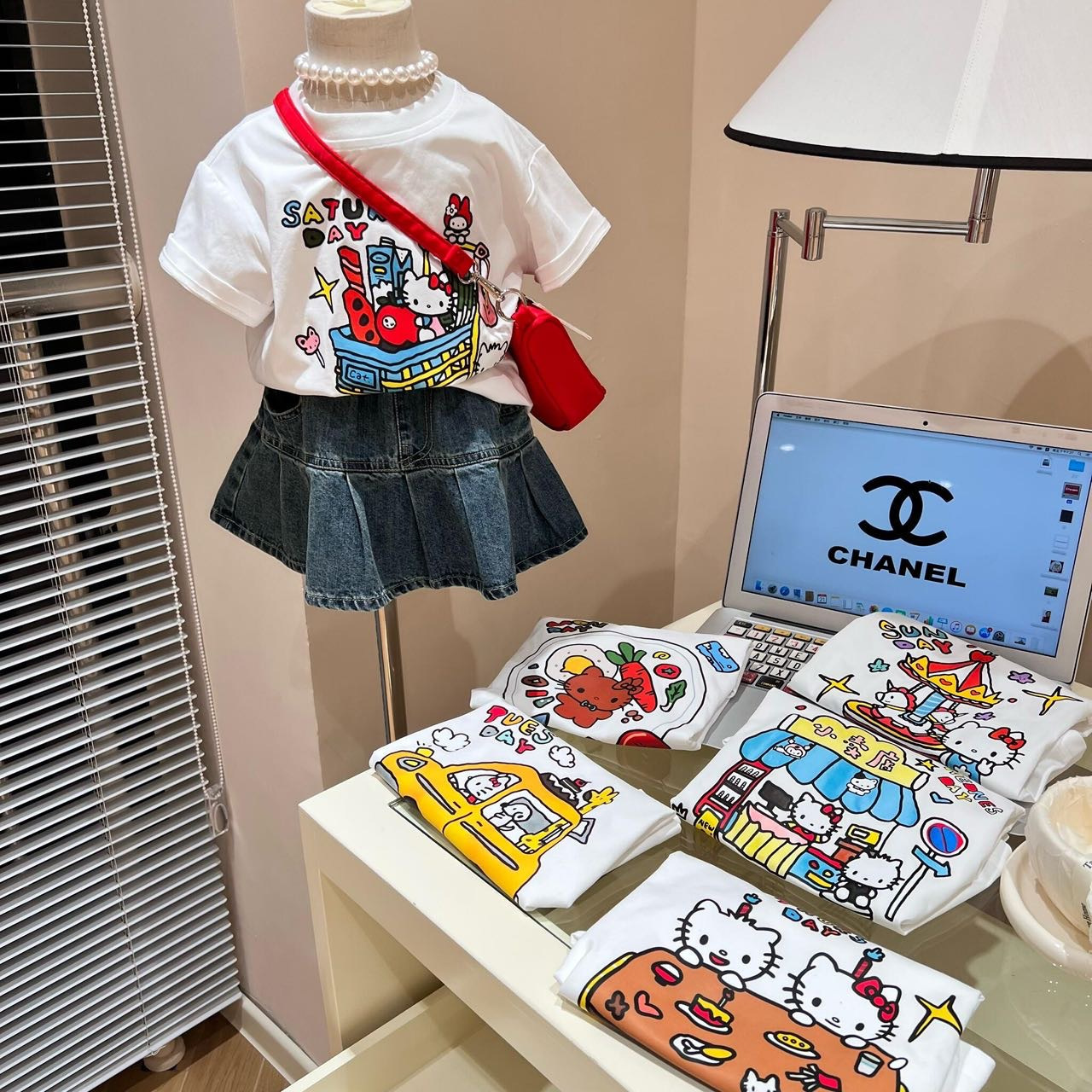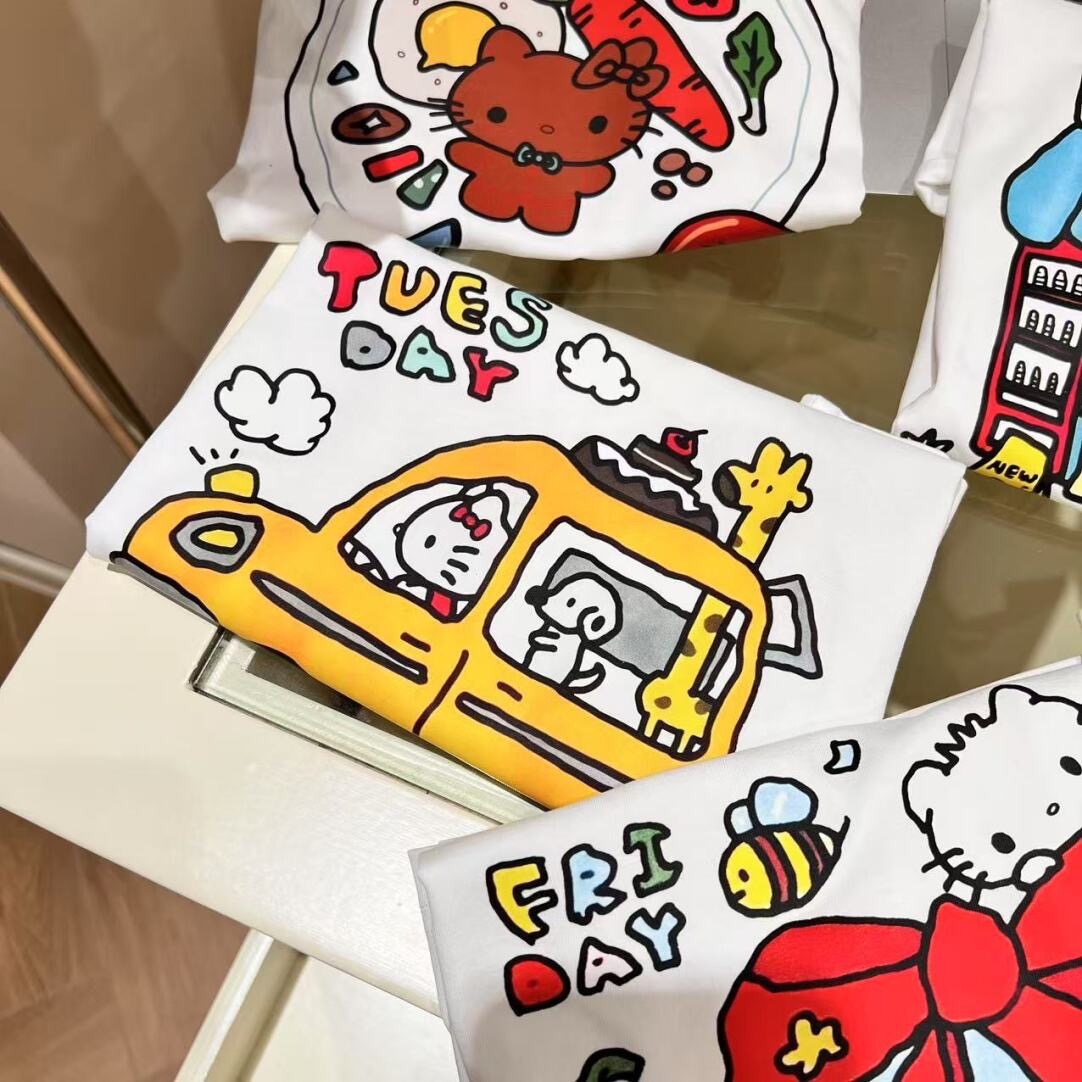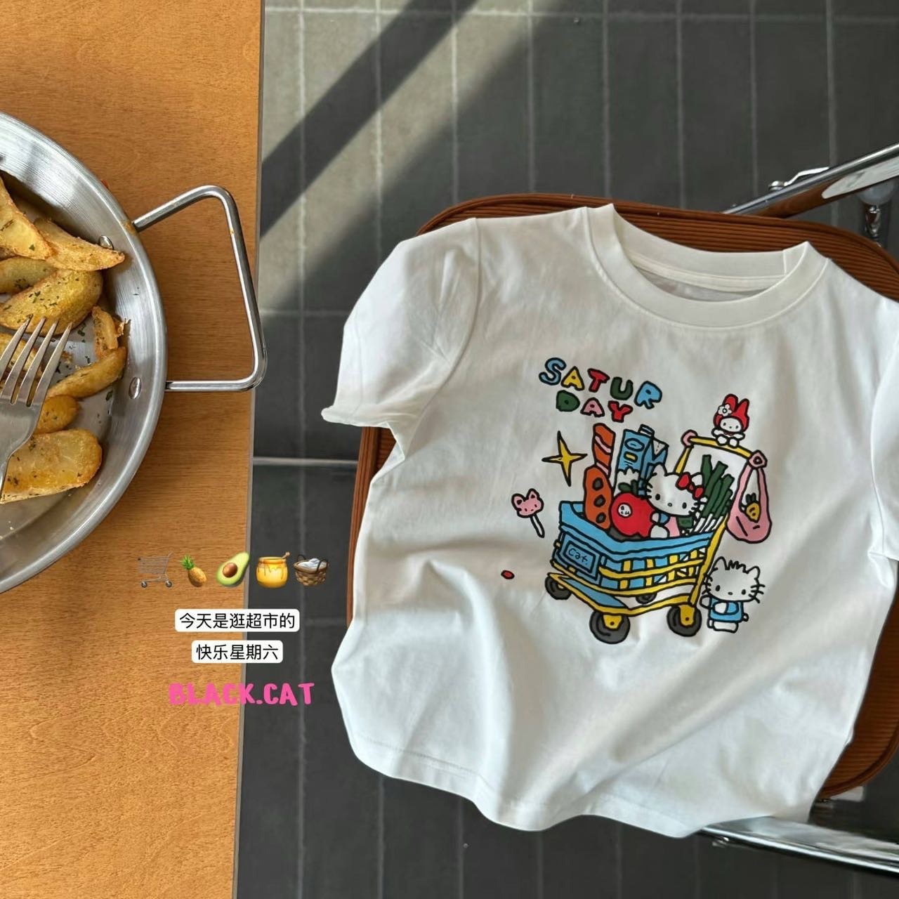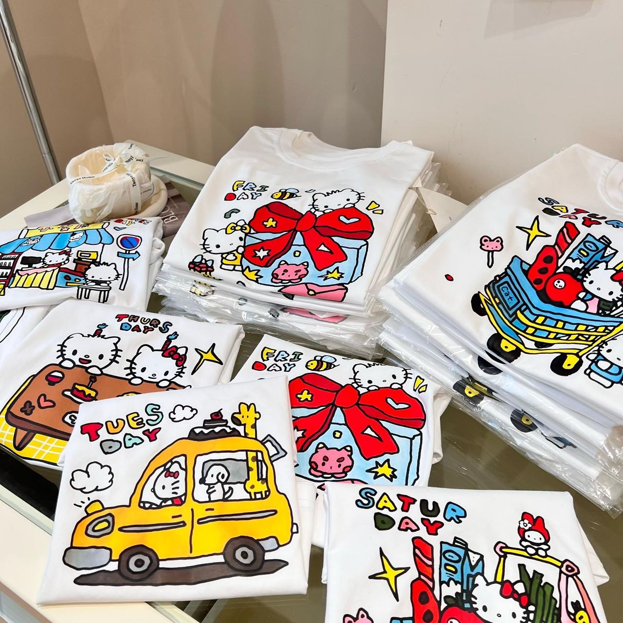 한국 여자 여름 만화 인쇄 유행 반팔 Kt 고양이 멀티 컬러 티셔츠스토어 가기
