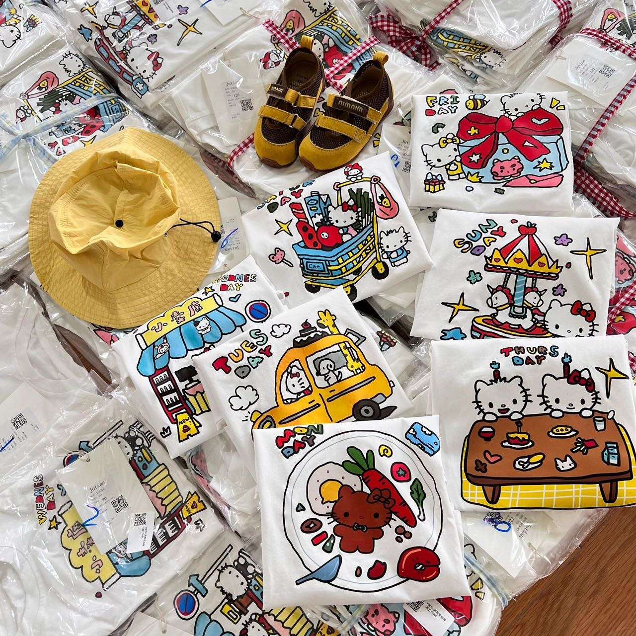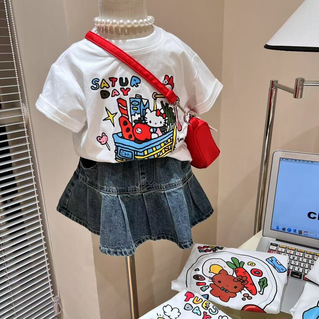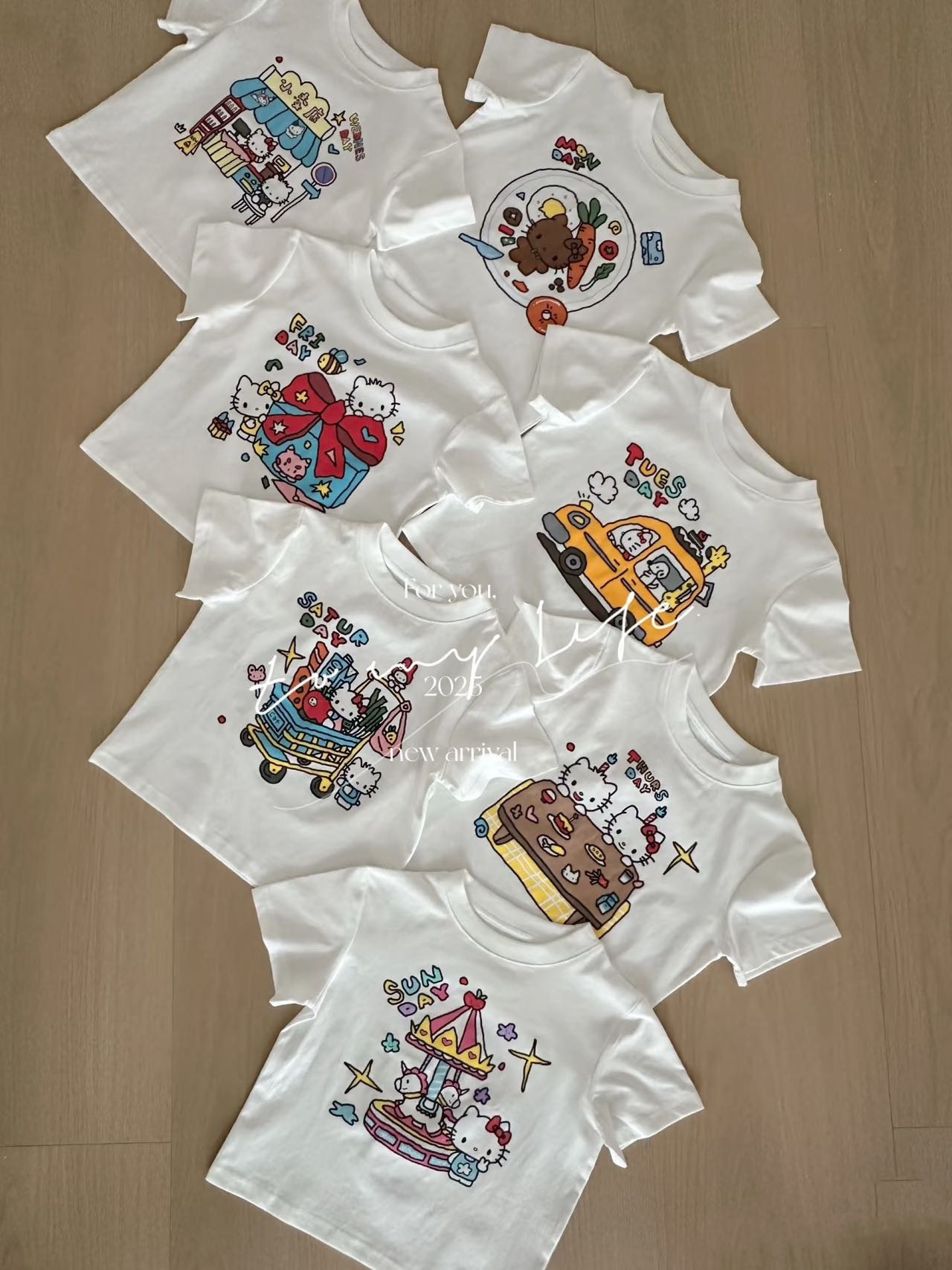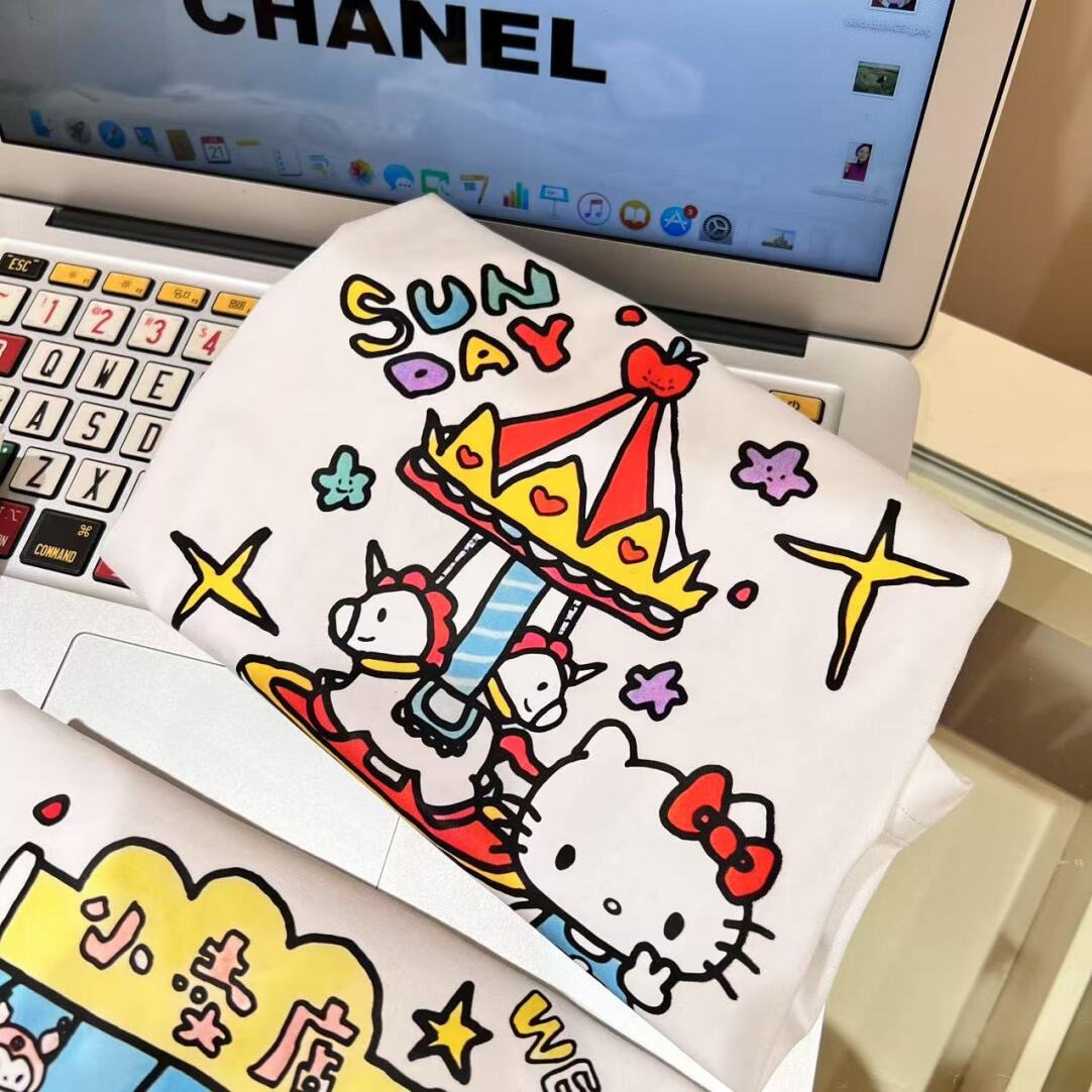 한국 여자 여름 만화 인쇄 유행 반팔 Kt 고양이 멀티 컬러 티셔츠스토어 가기