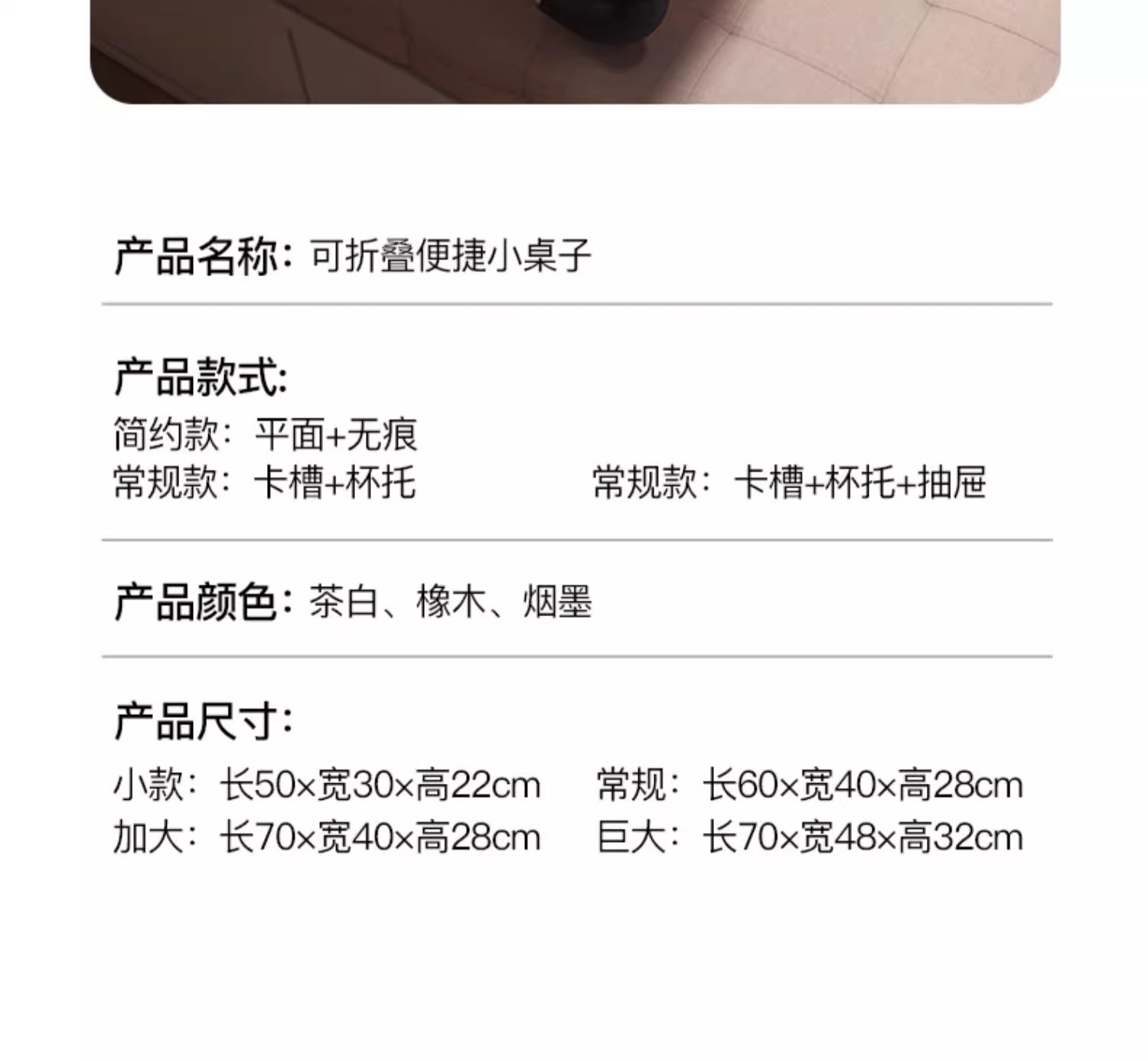 • 40*60 정사각형 나뭇결 + 컵 홀더 + 서랍 + 검정색 미끄럼 방지 다리