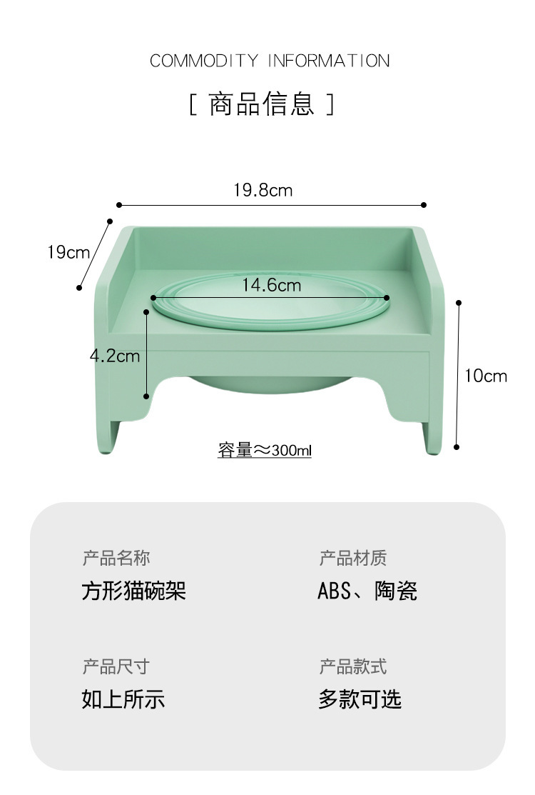 고양이 그릇 세라믹 높은 랙 스퀘어 고양이 그릇 랙 고양이 음식 분지 식탁 큰 직경 애완 동물 물 그릇을 녹이기 쉽지 않음스토어 가기