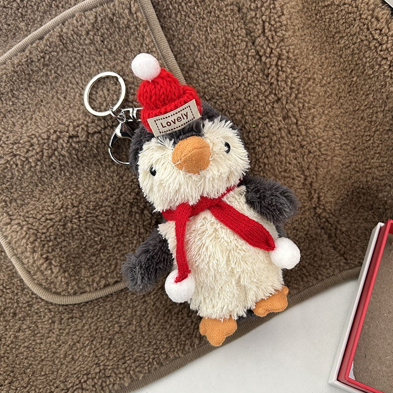 인터넷 연예인 귀여운 땅콩 펭귄 키 체인 펜던트 플러시 펭귄 인형 커플 작은 선물 학교 가방 펜던트