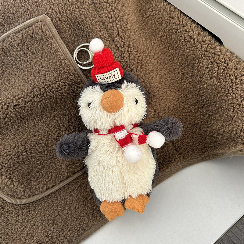 인터넷 연예인 귀여운 땅콩 펭귄 키 체인 펜던트 플러시 펭귄 인형 커플 작은 선물 학교 가방 펜던트스토어 가기