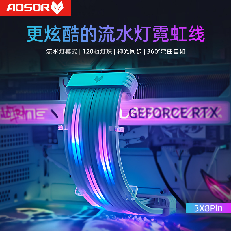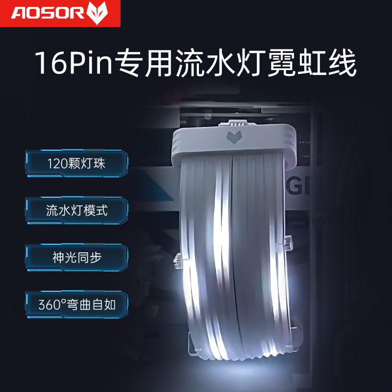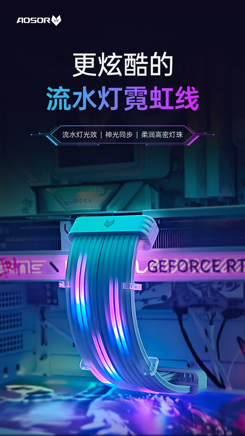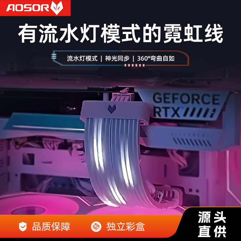 此款为流星霓虹线,具有非常有特色的流星雨模式,霓虹线为8p接口,需要搭配专用流星控制器,遥控调控灯光,灯光非常炫酷,并且支持主板5V ARGB神光同步,产品大量现货,欢迎咨询采购!