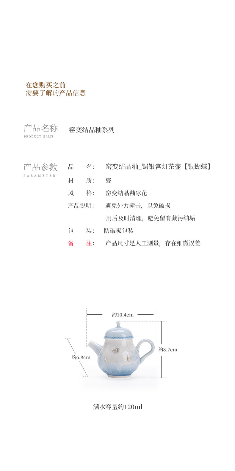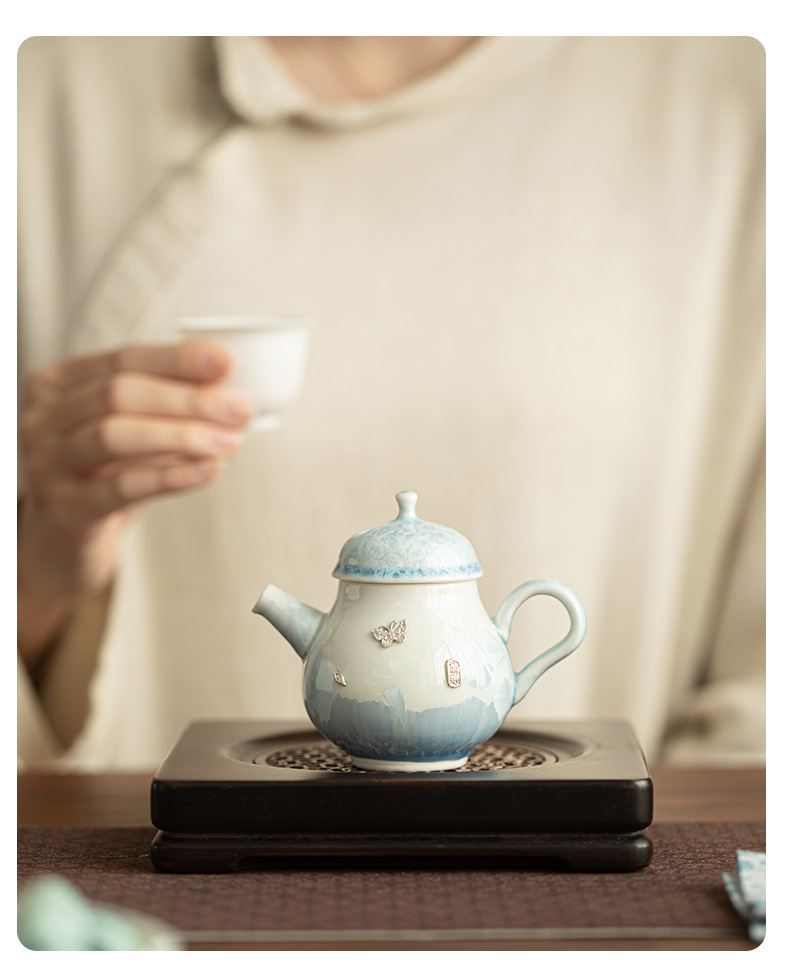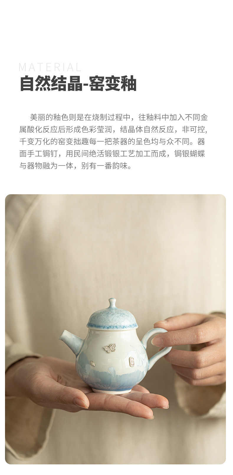 Jingdezhen 가마 크리스탈 유약 쿠리움 네일 나비 주전자 통풍 주전자 쿵푸 주전자 작은 용량 절묘한 세라믹 차 세트