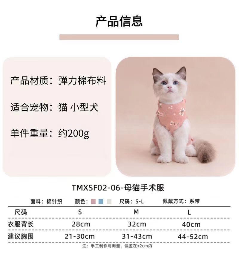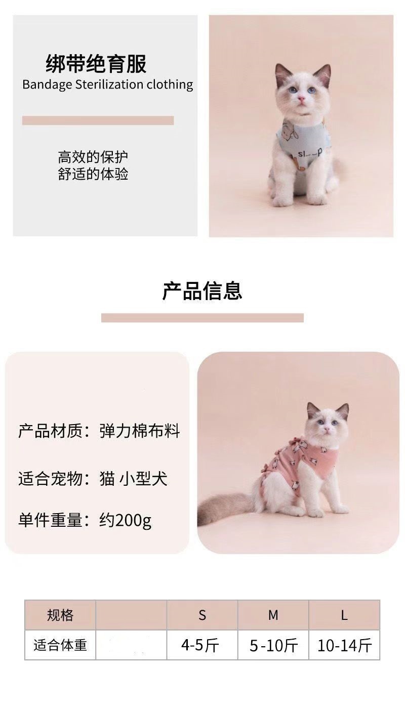 고양이 이유식복, 매우 부드럽고 편안한 수술 후복, 사계절 사용 가능한 범용 번들형 핥기 방지 및 괴롭힘 방지 고양이 살균복스토어 가기