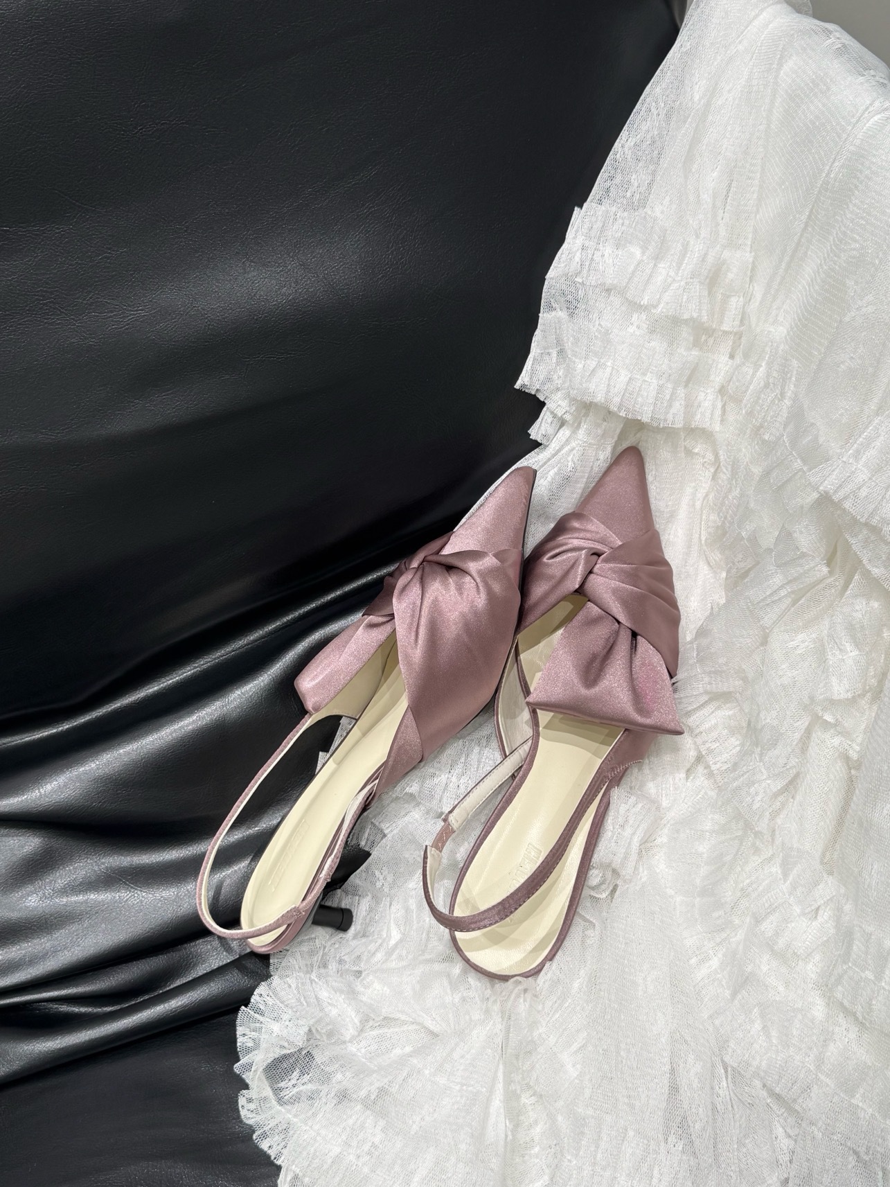 여름 아우터용 여성용 프렌치 패션 보우 스틸레토 포인티드 토 하이힐, 스커트와 어울리는 복고풍 젠틀 샌들