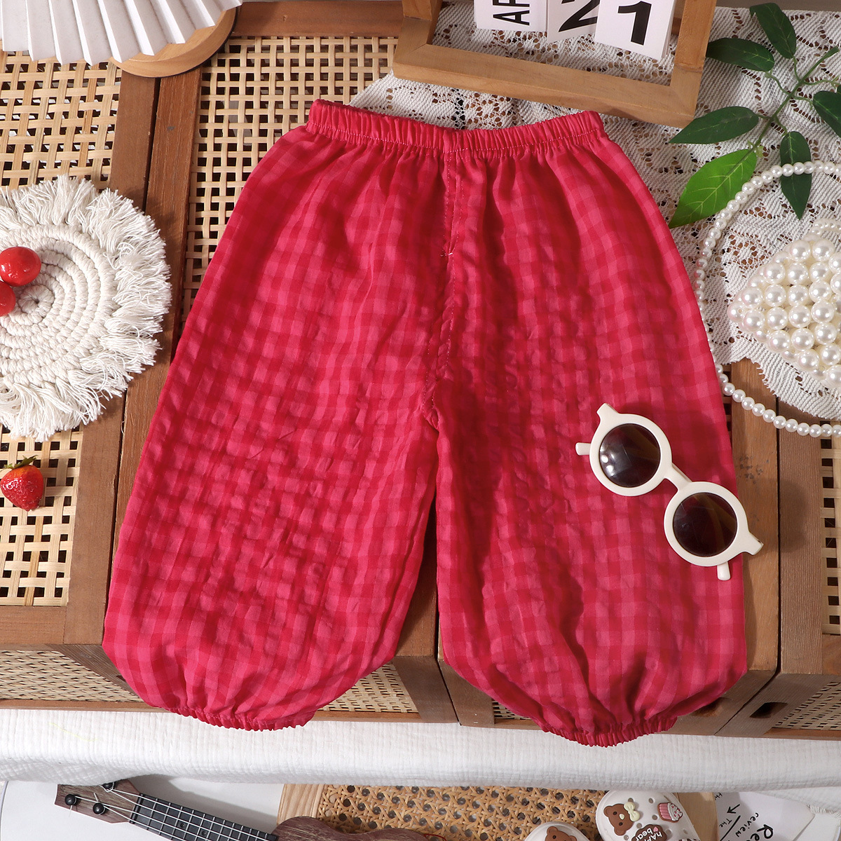 어린이 여름 모기 방지 바지 아기 캐주얼 체크무늬 랜턴 팬츠 남녀공용 루즈핏 발목 조임 9부 바지 한국 스타일 캐주얼스토어 가기
