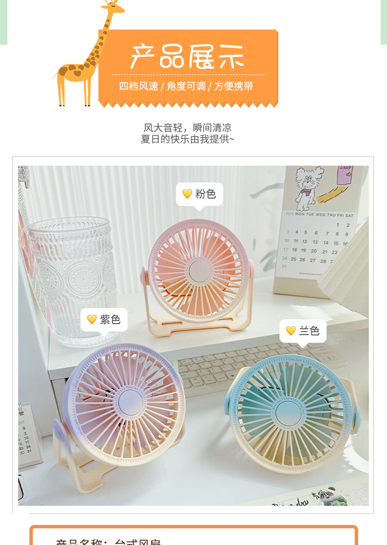 그라디언트 데스크탑 작은 팬 usb 충전식 학생 기숙사 사무실 테이블 매달려 미니 휴대용스토어 가기