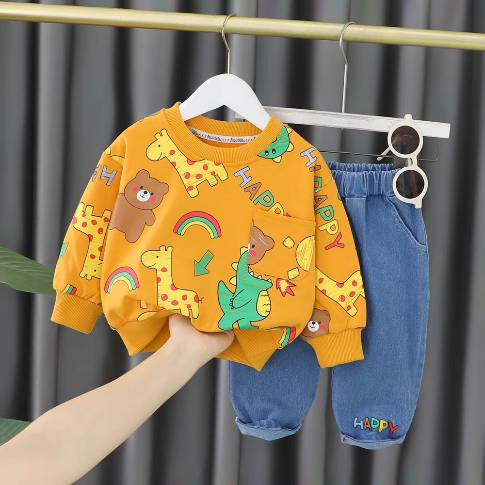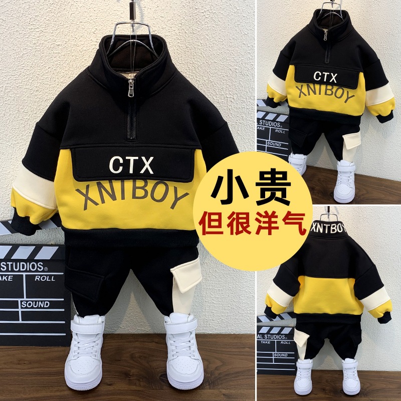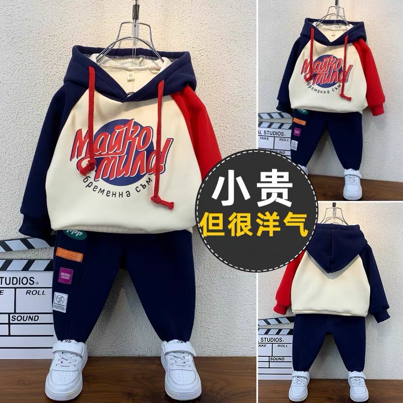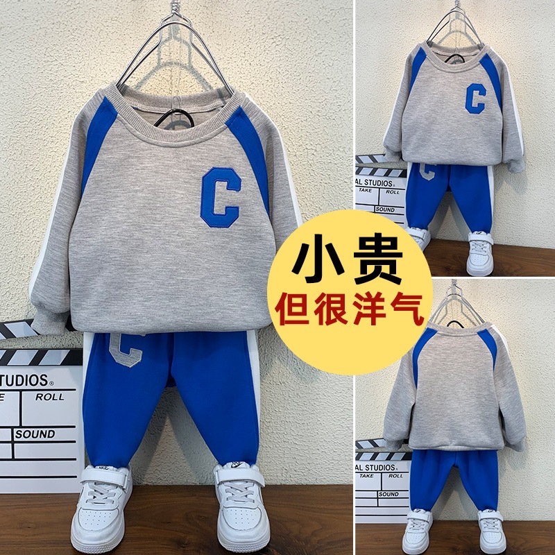 소년 정장 가을, 겨울 잘 생기고 세련된 2025 새로운 어린이 소년 캐주얼 라운드 넥 스포츠 멋진 투피스 세트스토어 가기