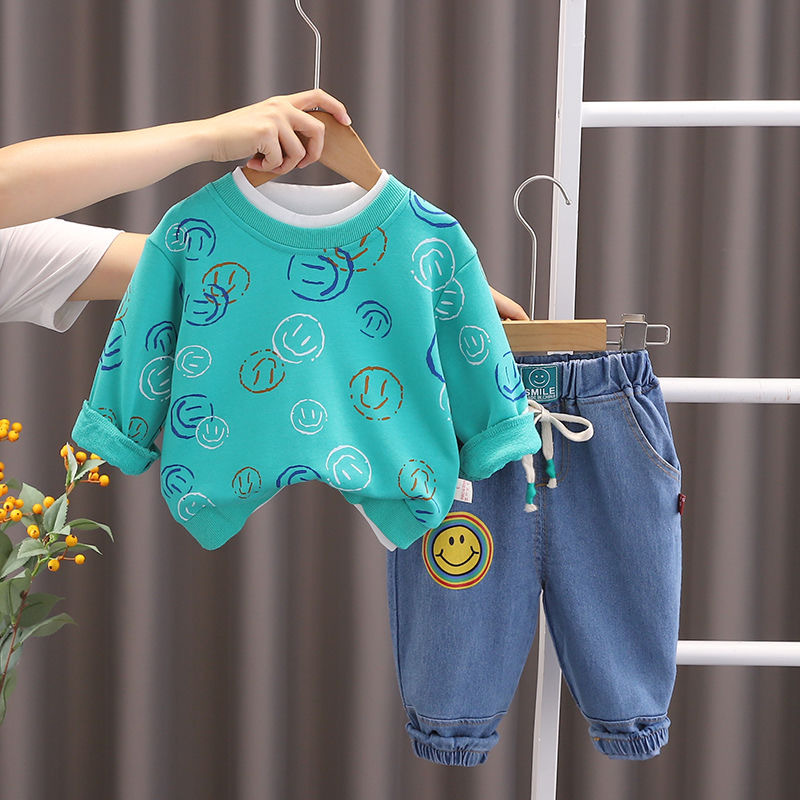 소년 정장 가을, 겨울 잘 생기고 세련된 2025 새로운 어린이 소년 캐주얼 라운드 넥 스포츠 멋진 투피스 세트