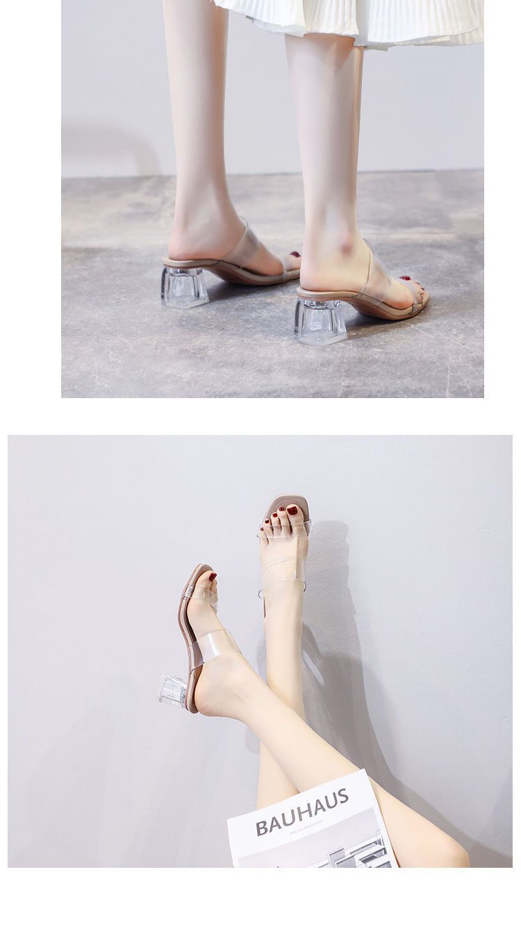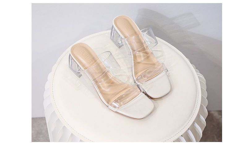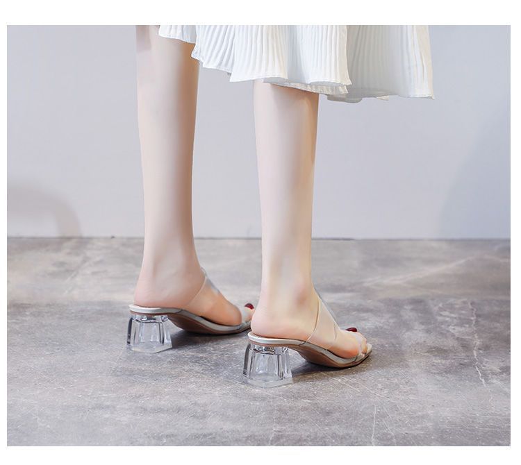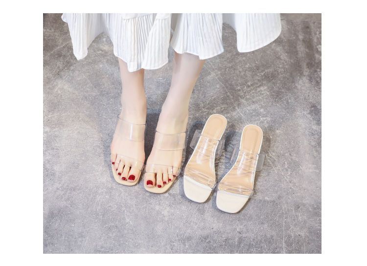 2025 여름 로우 힐 샌들 샌들 여성 슬리퍼 투명한 두꺼운 굽 프렌치 힐 새로운 스타일 인터넷 연예인