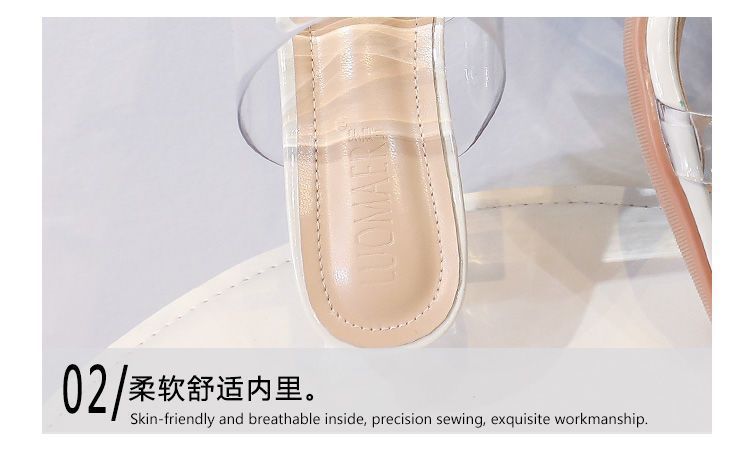 2025 여름 로우 힐 샌들 샌들 여성 슬리퍼 투명한 두꺼운 굽 프렌치 힐 새로운 스타일 인터넷 연예인스토어 가기