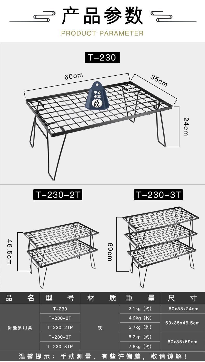공장 직접 판매 Koman T-230 필드 프레임 접이식 테이블 철 다기능 야외 캠핑 피크닉 테이블 바베큐 테이블
