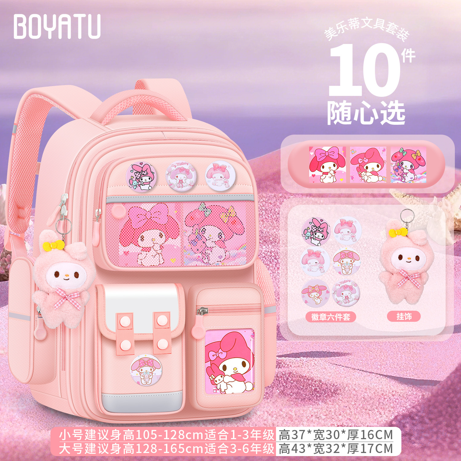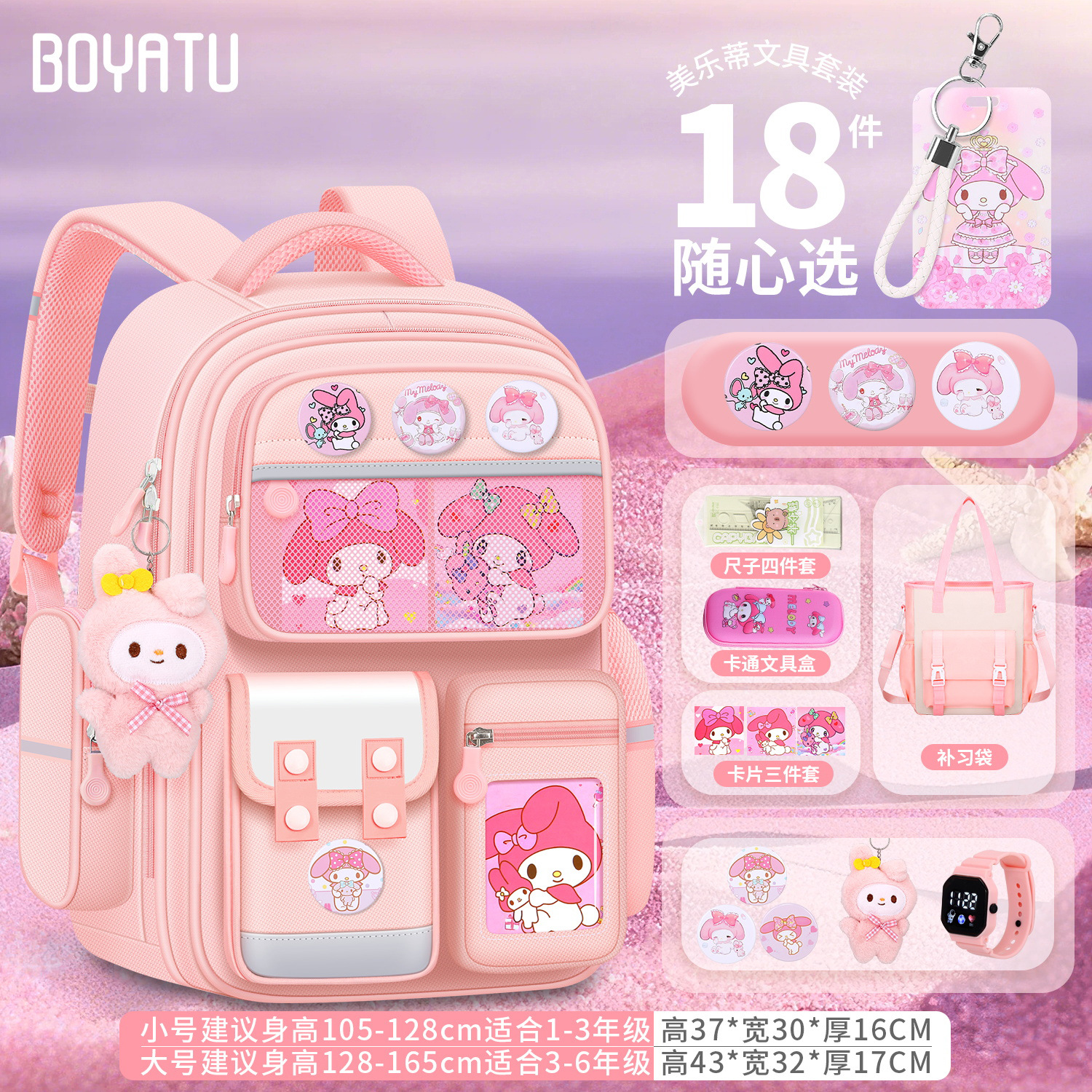 2025년 신형 멜로디 책가방 초등학생 1, 2, 3~6학년 어린이 배낭 부담을 줄이고 척추를 보호합니다.