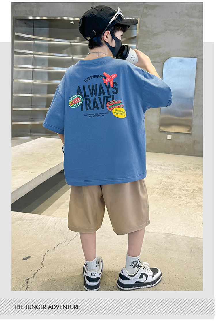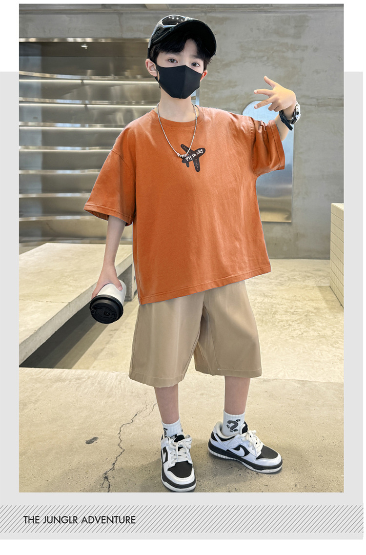어린이와 소년 여름 세트 2025 새로운 어린이 스포츠 레저 편지 반팔 티셔츠 투피스 핸섬 6
