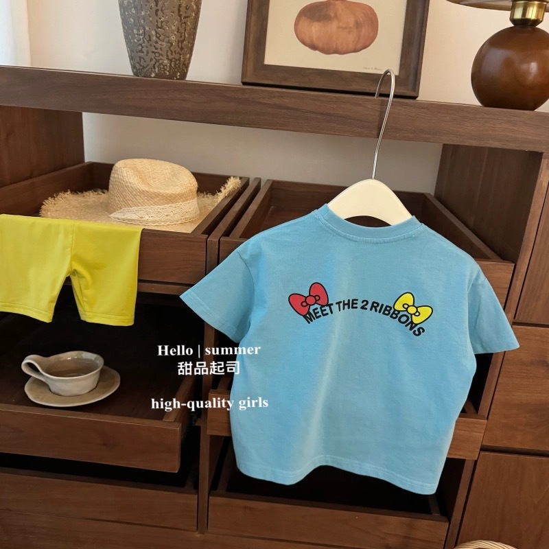 여름 새로운 핫 걸스 KT 만화 프린트 티셔츠 어린이 유행 서양식 편안한 반소매 반소매 탑
