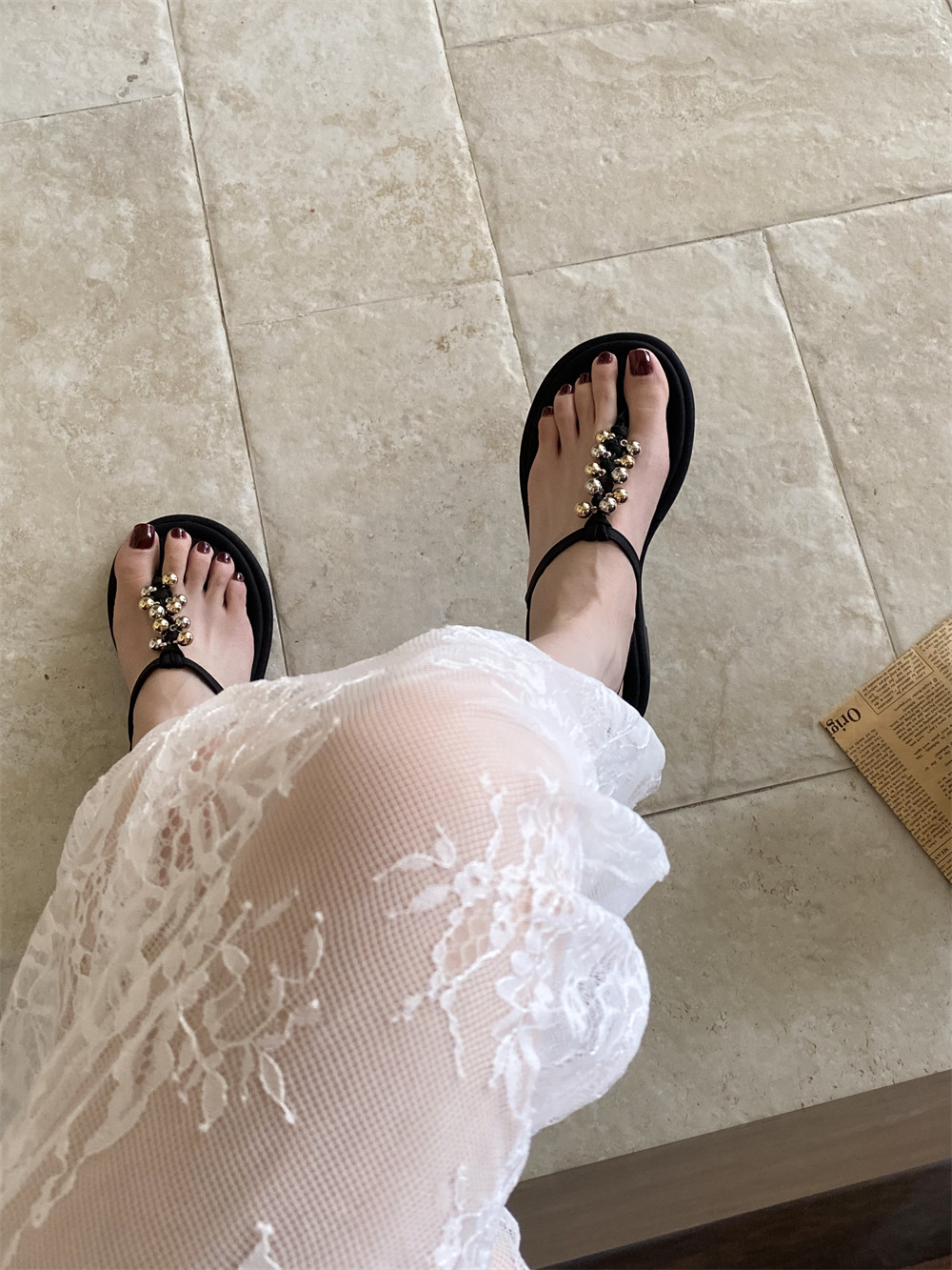 2025년 여름 신상 리벳 헤링본 플랫 비치 휴가 게으른 오픈 토 여성 샌들