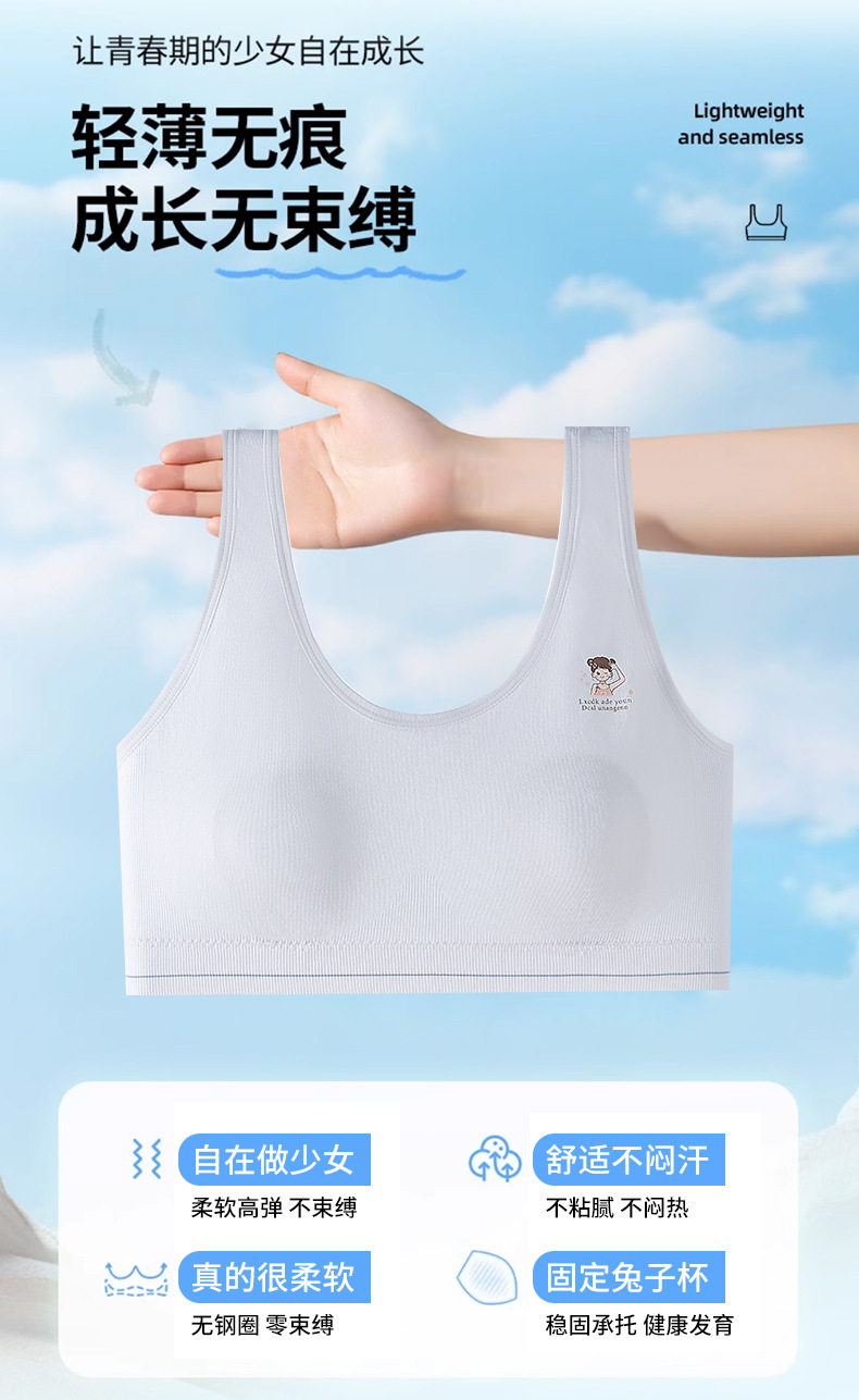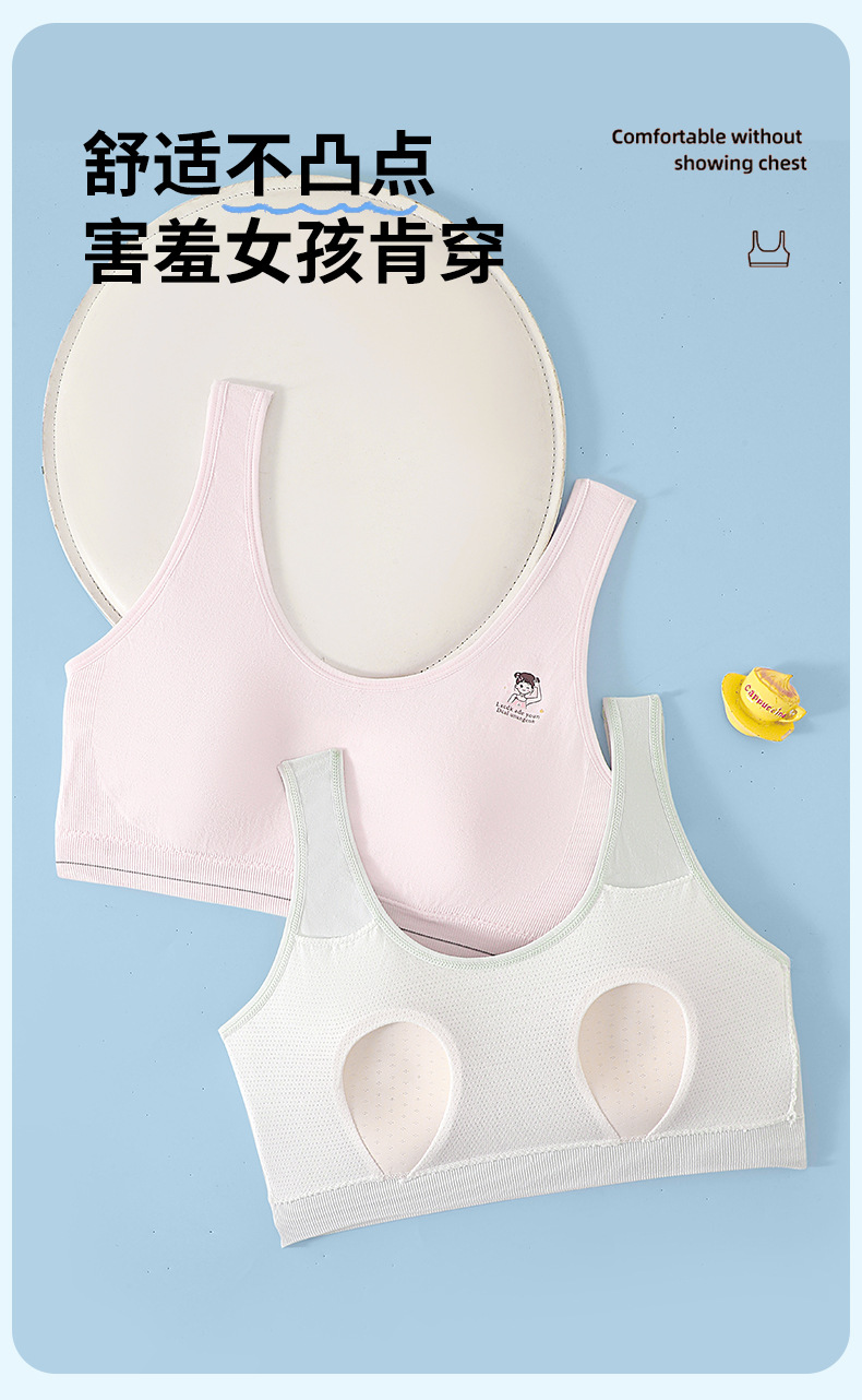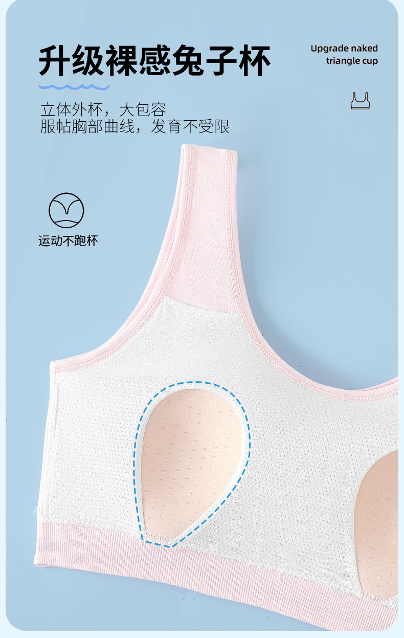 발달기의 부드러운 누드 코튼 조끼, 고정된 토끼 귀 컵, 이음매 없는 속옷, 통기성 및 땀 흡수 소녀 브라