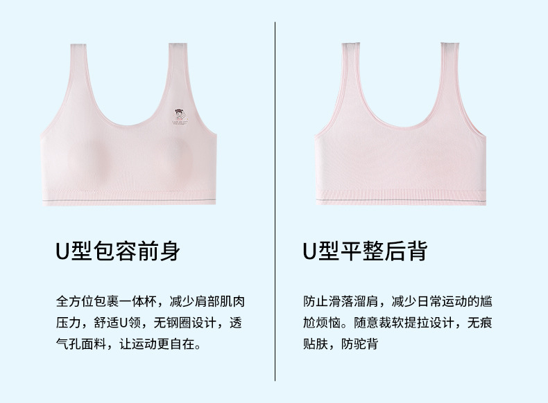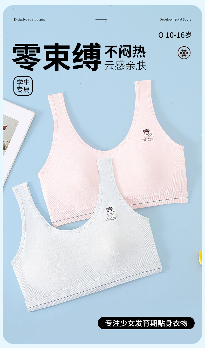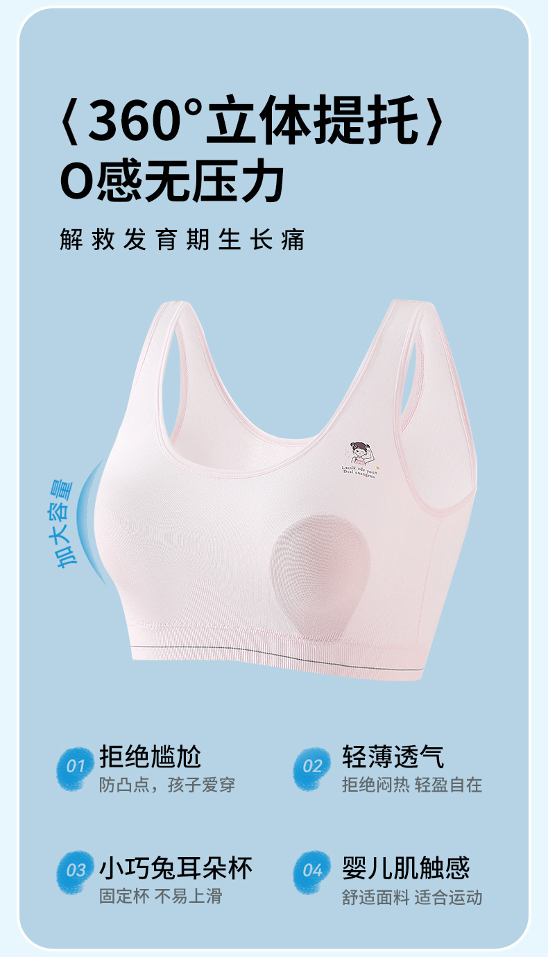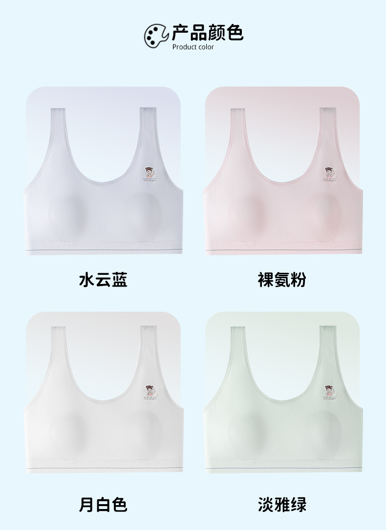 발달기의 부드러운 누드 코튼 조끼, 고정된 토끼 귀 컵, 이음매 없는 속옷, 통기성 및 땀 흡수 소녀 브라