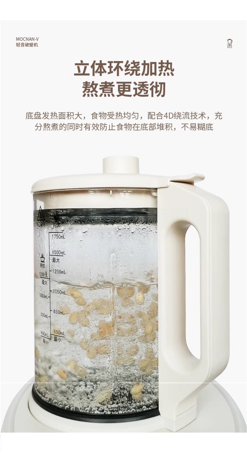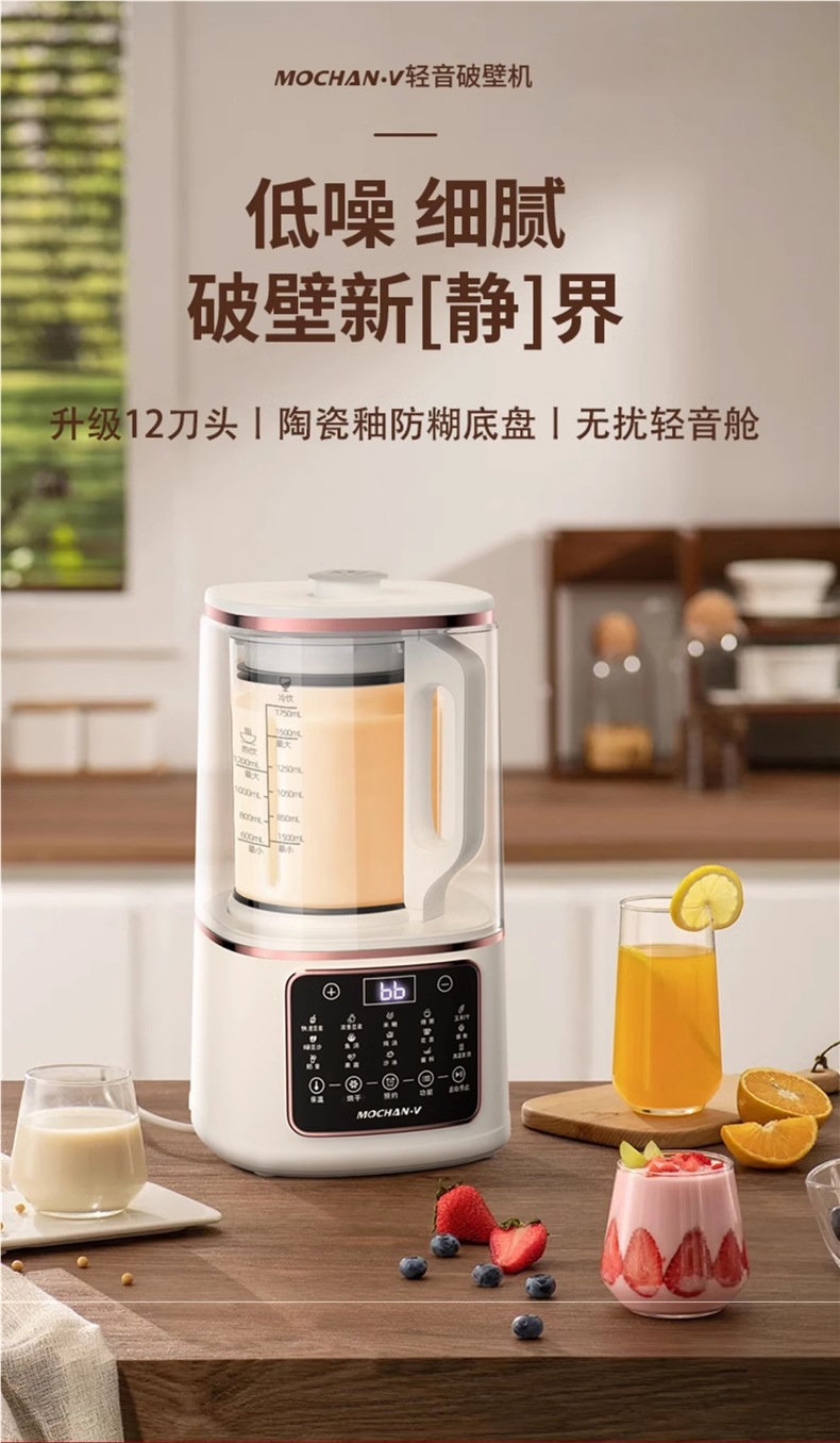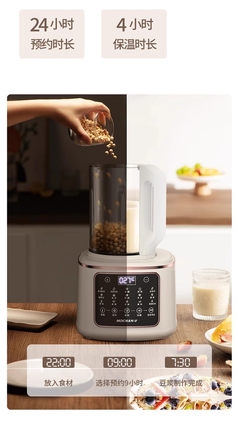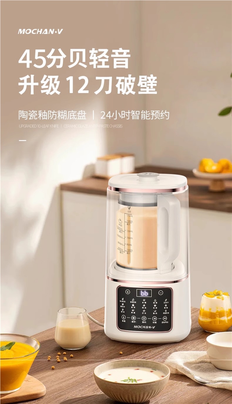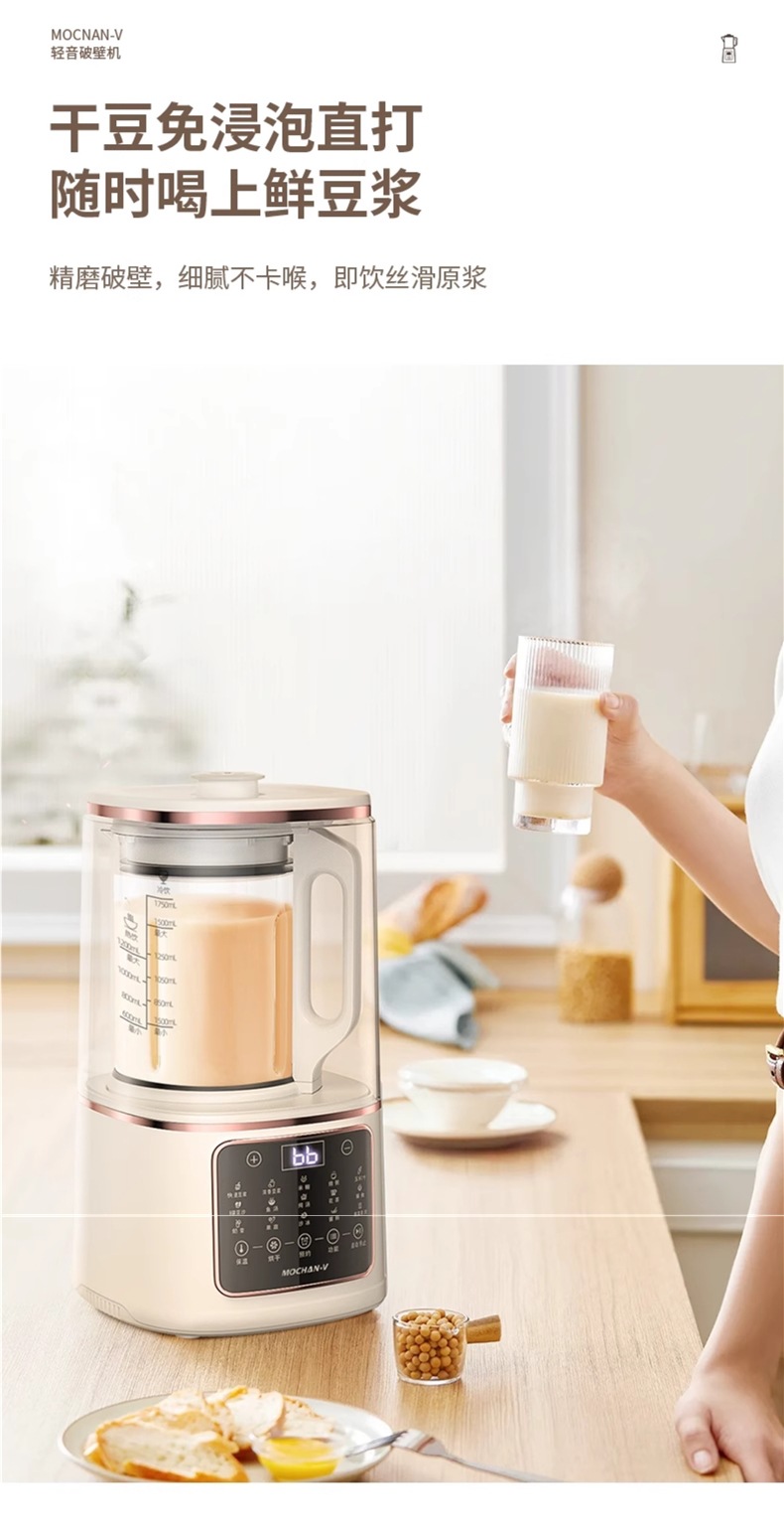 영국 Mochan-v 벽 파괴 기계 가정용 새로운 완전 자동 조용하고 가벼운 슬러지없는 다기능 두유 기계스토어 가기