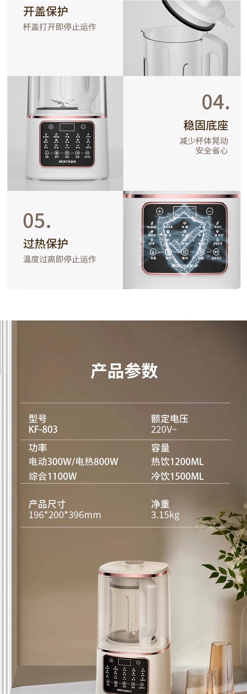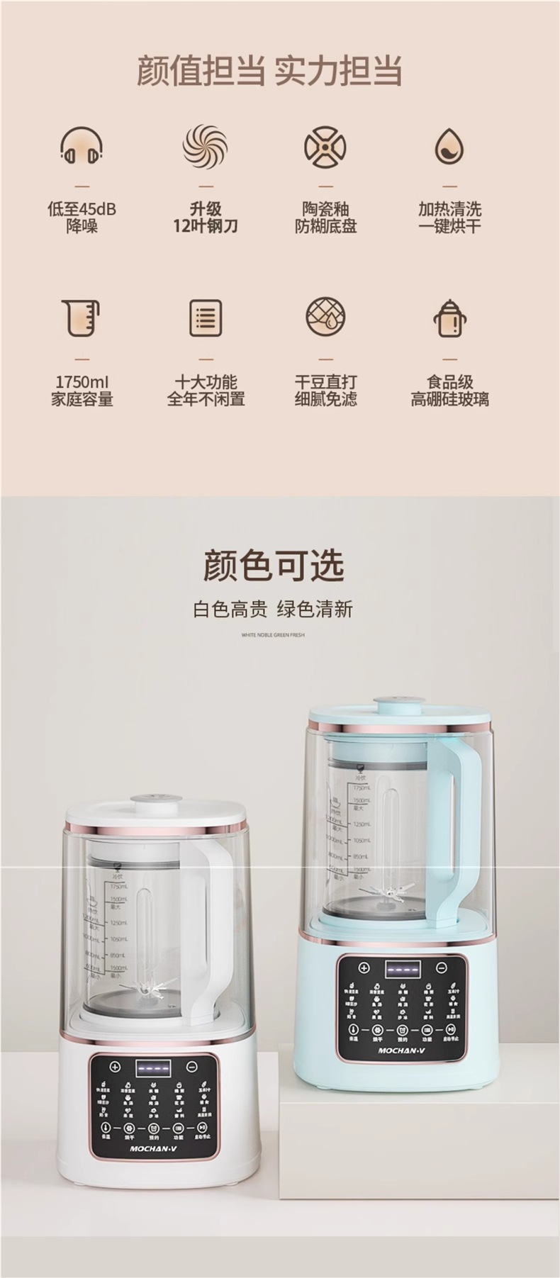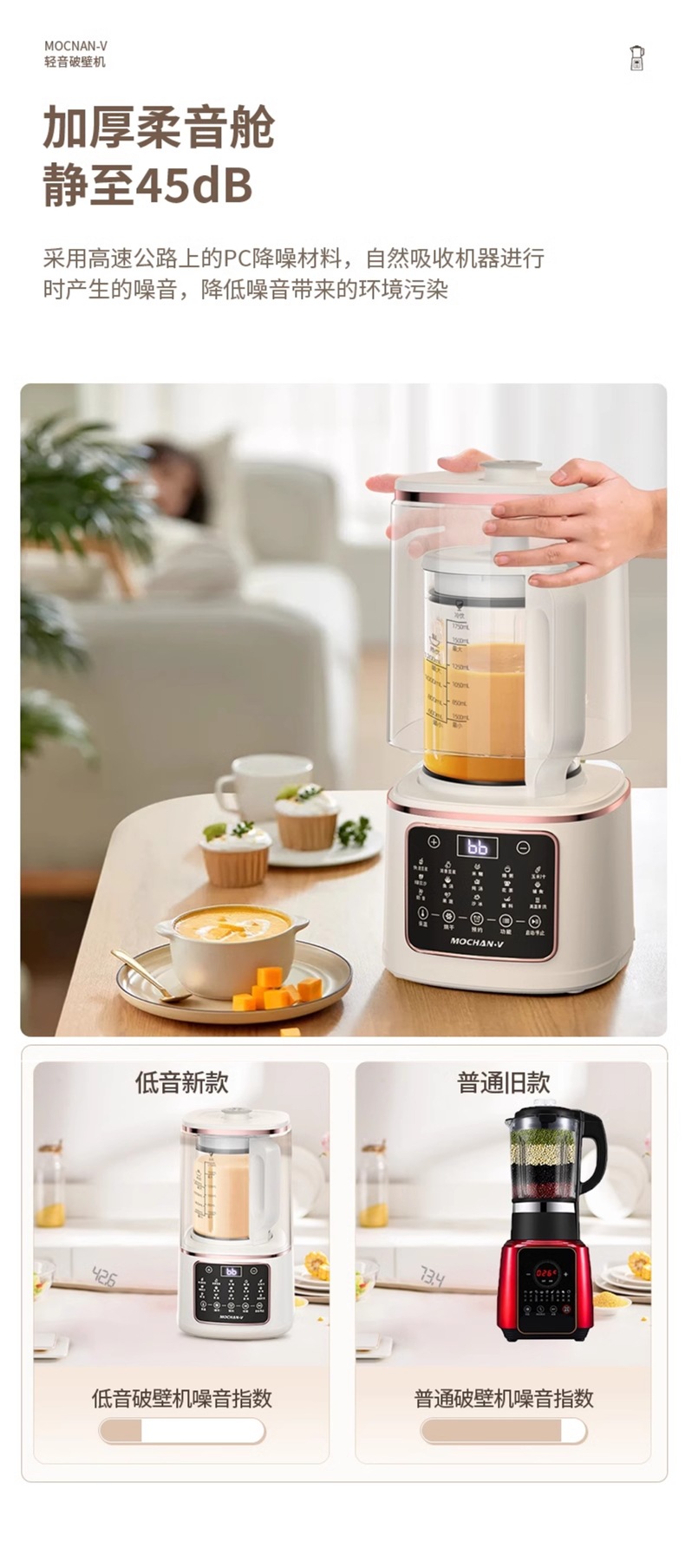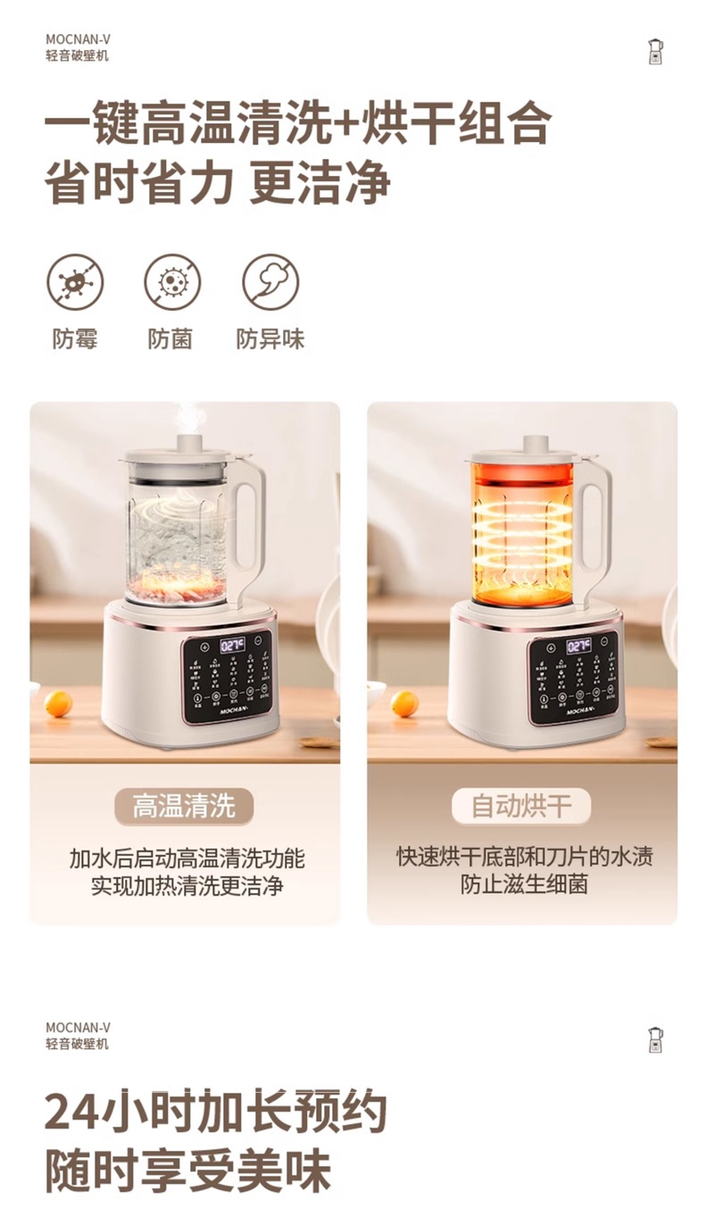 영국 Mochan-v 벽 파괴 기계 가정용 새로운 완전 자동 조용하고 가벼운 슬러지없는 다기능 두유 기계스토어 가기