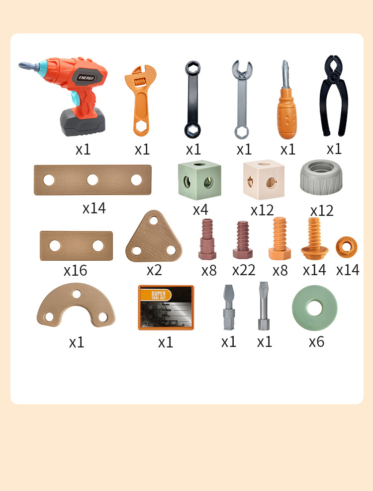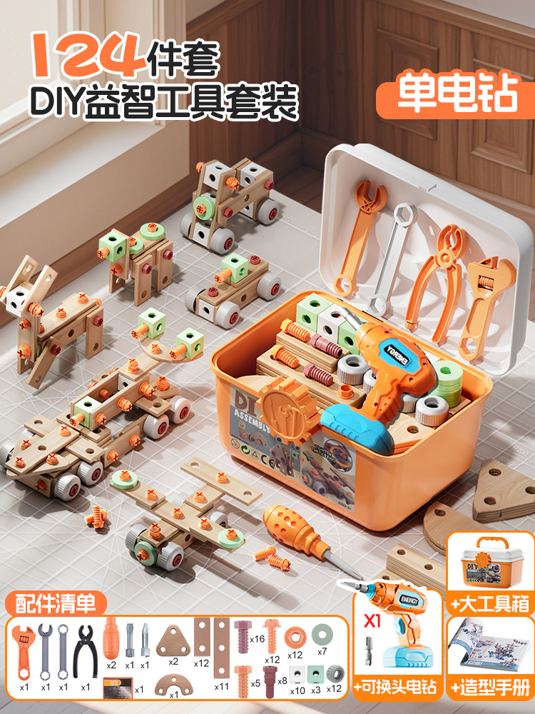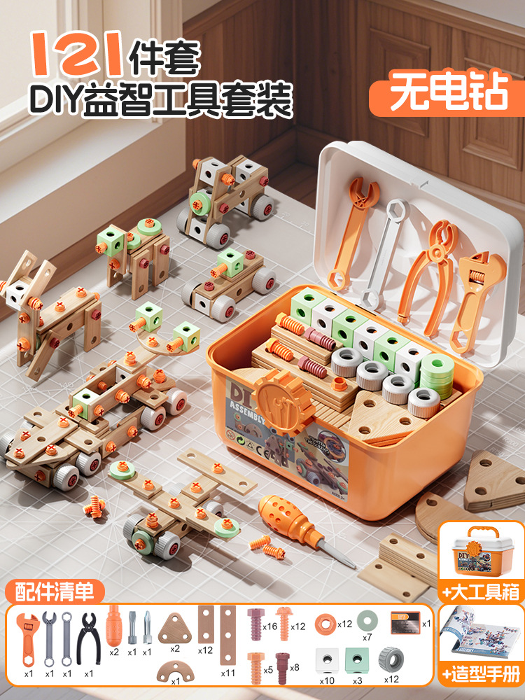 • [전기 드릴 없음] 120피스 DIY 교육 도구 세트