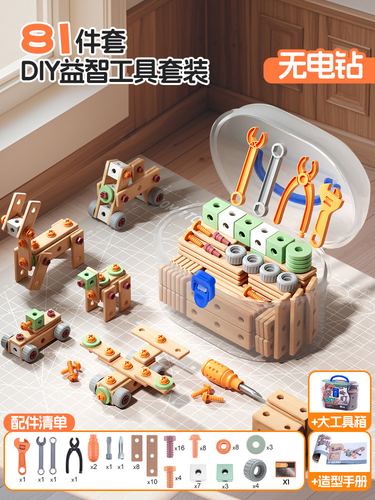 • [전기 드릴 없음] 80피스 DIY 교육 도구 세트