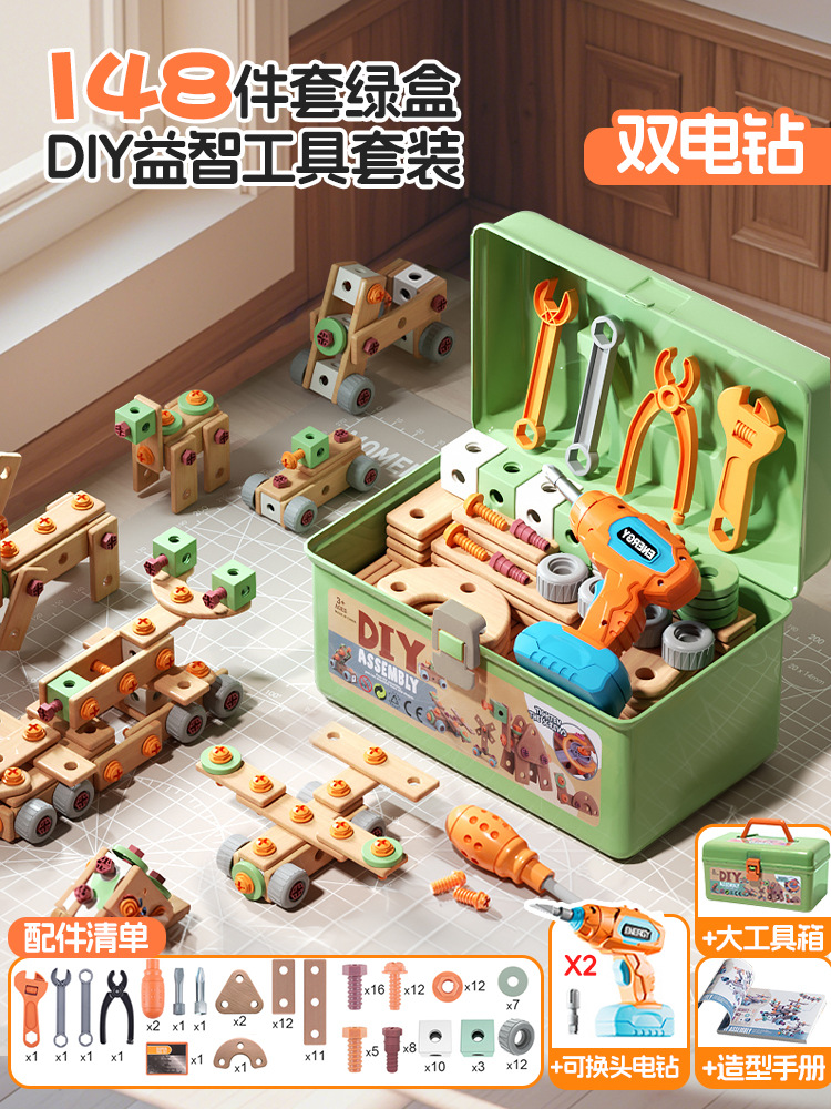 • [단일 전기 드릴] 144피스 그린 캐리어 DIY 퍼즐 도구 세트