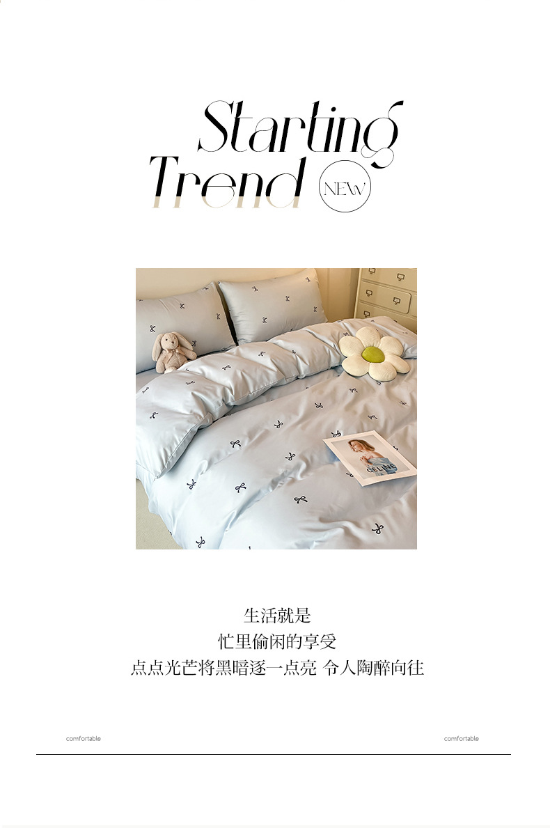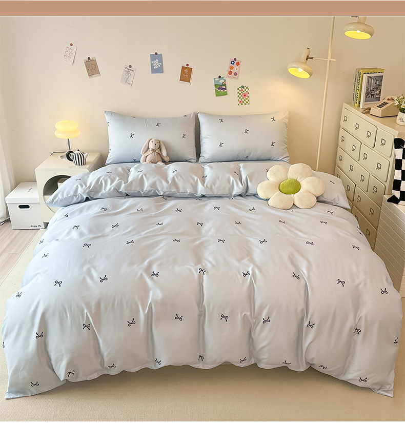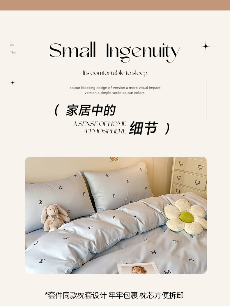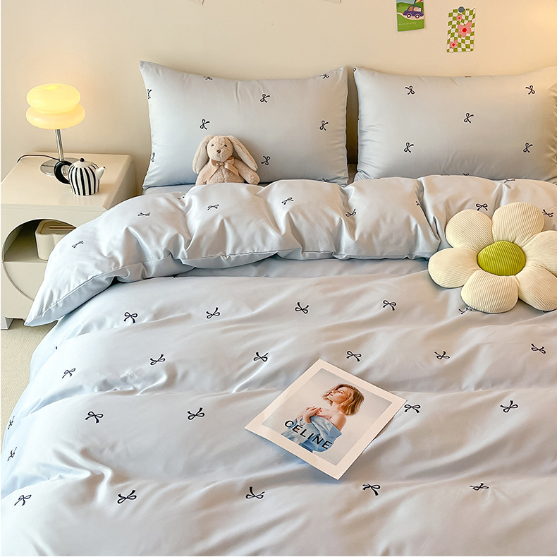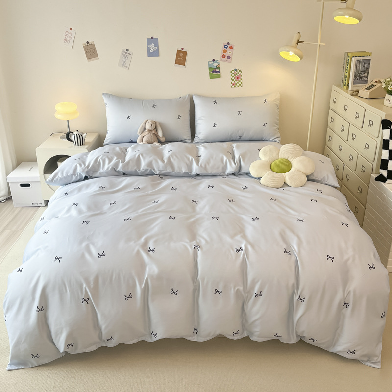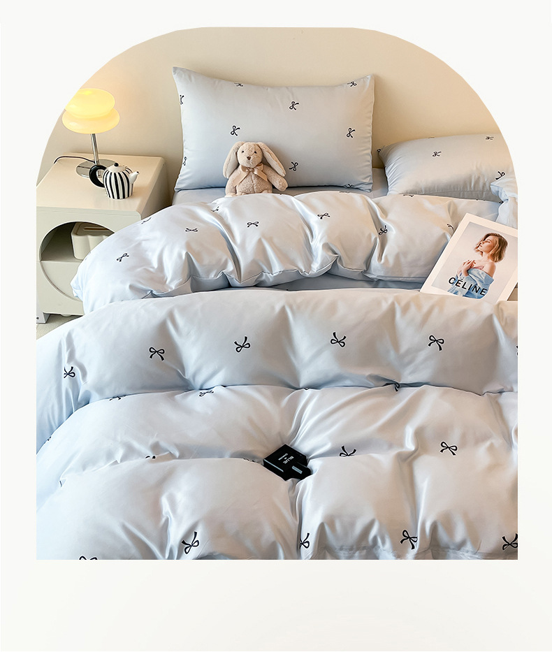 새로운 얼음 실크 4 피스 세트 여름 작은 신선한 실행 볼륨 간단한 인쇄 얼음 실크 4 피스 퀼트 커버 단일 제품 도매스토어 가기