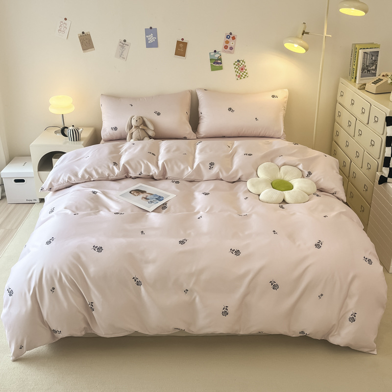 새로운 얼음 실크 4 피스 세트 여름 작은 신선한 실행 볼륨 간단한 인쇄 얼음 실크 4 피스 퀼트 커버 단일 제품 도매