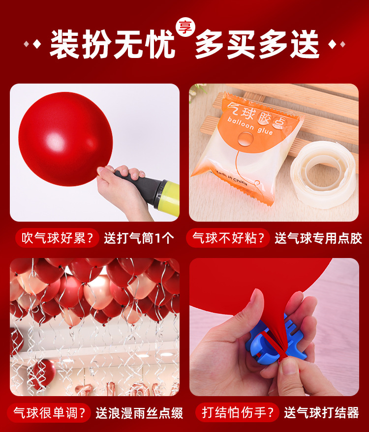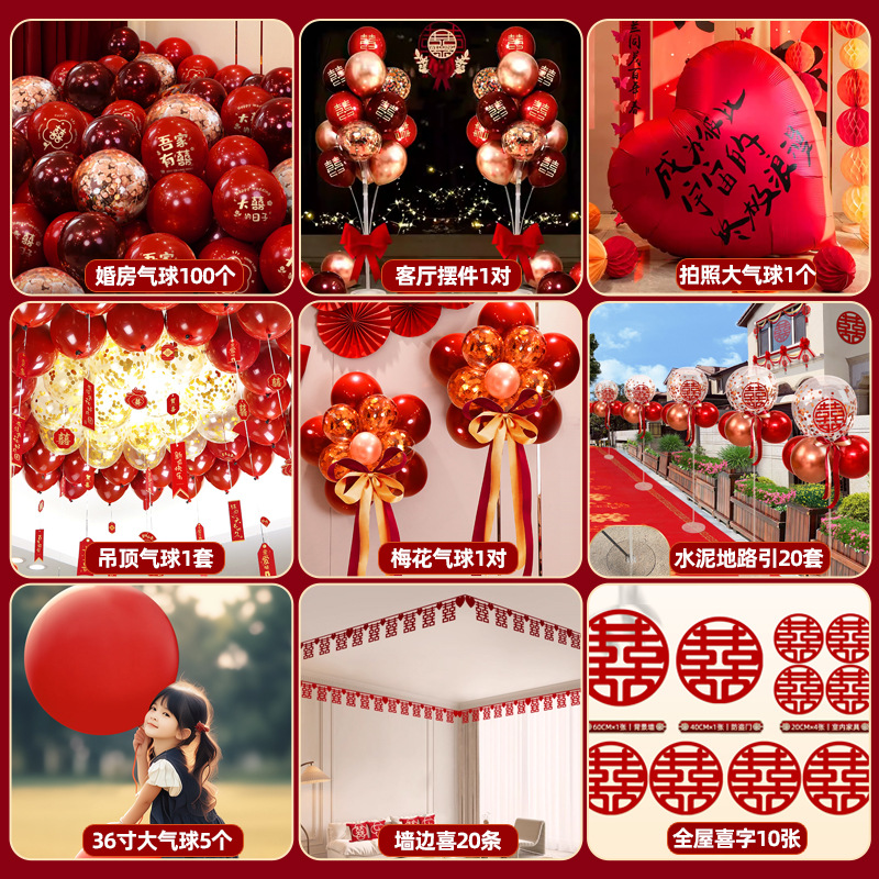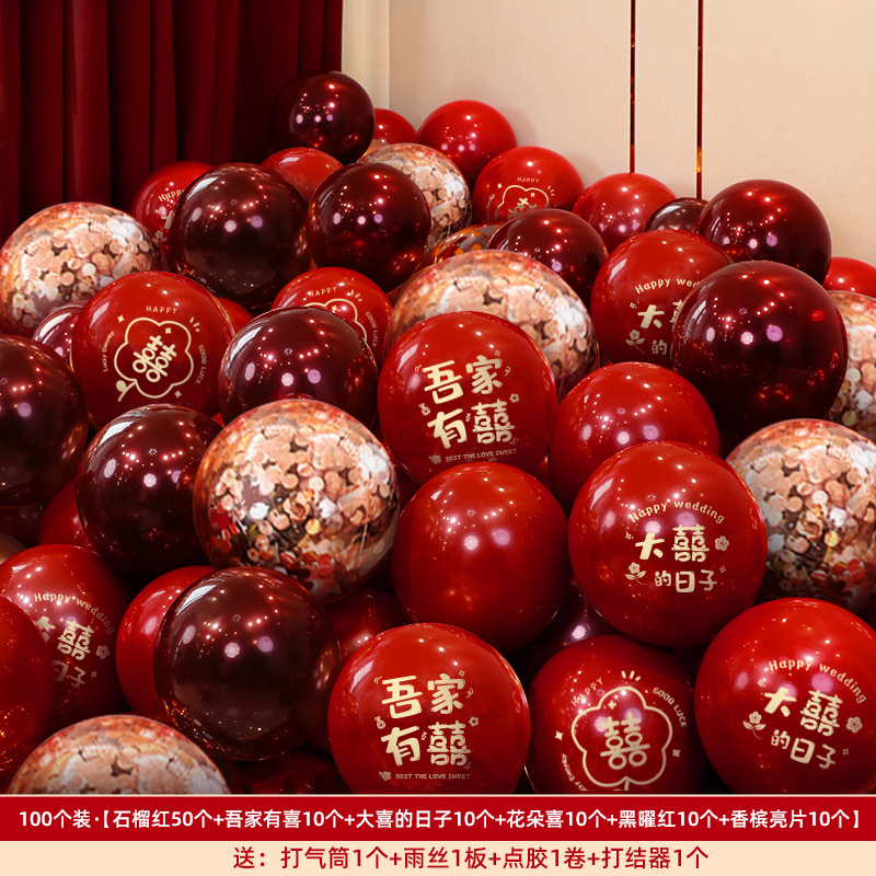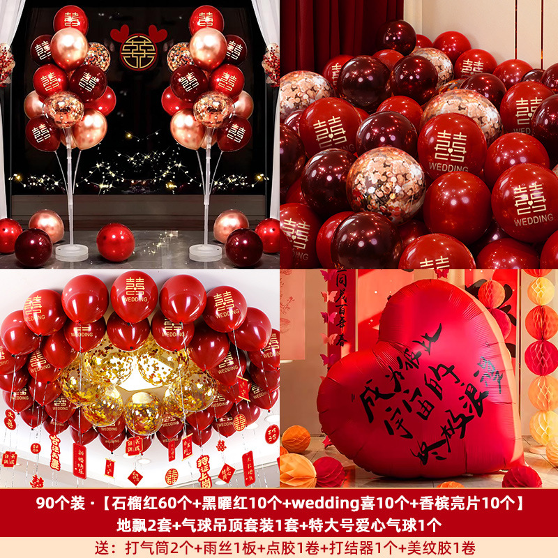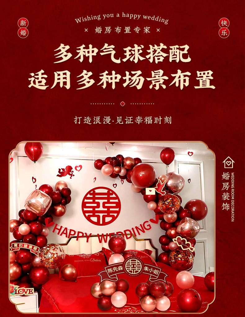 풍선 웨딩 장식 웨딩 룸 장식 세트 웨딩 레드 약혼 장면 행복한 단어 풍선 웨딩 용품스토어 가기