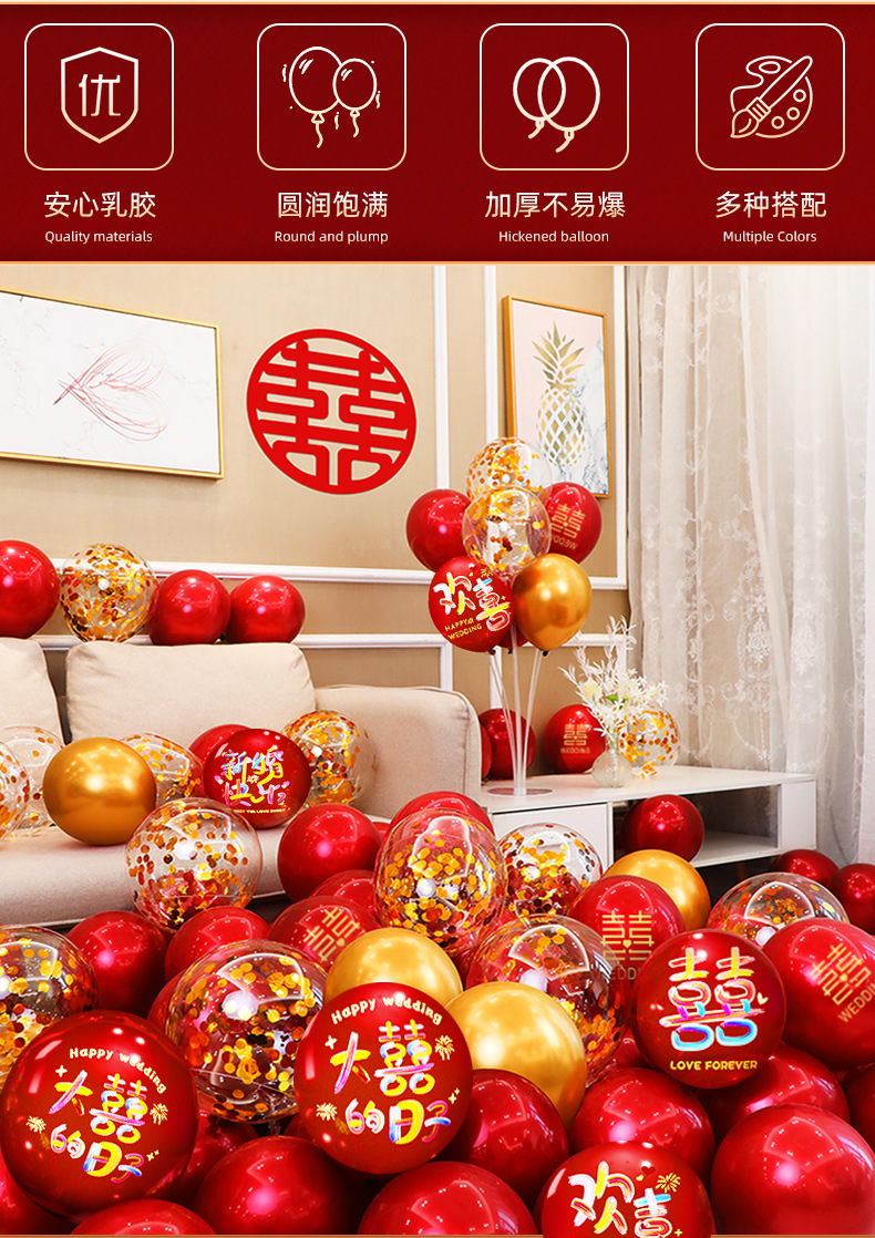 풍선 웨딩 장식 웨딩 룸 장식 세트 웨딩 레드 약혼 장면 행복한 단어 풍선 웨딩 용품