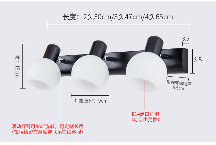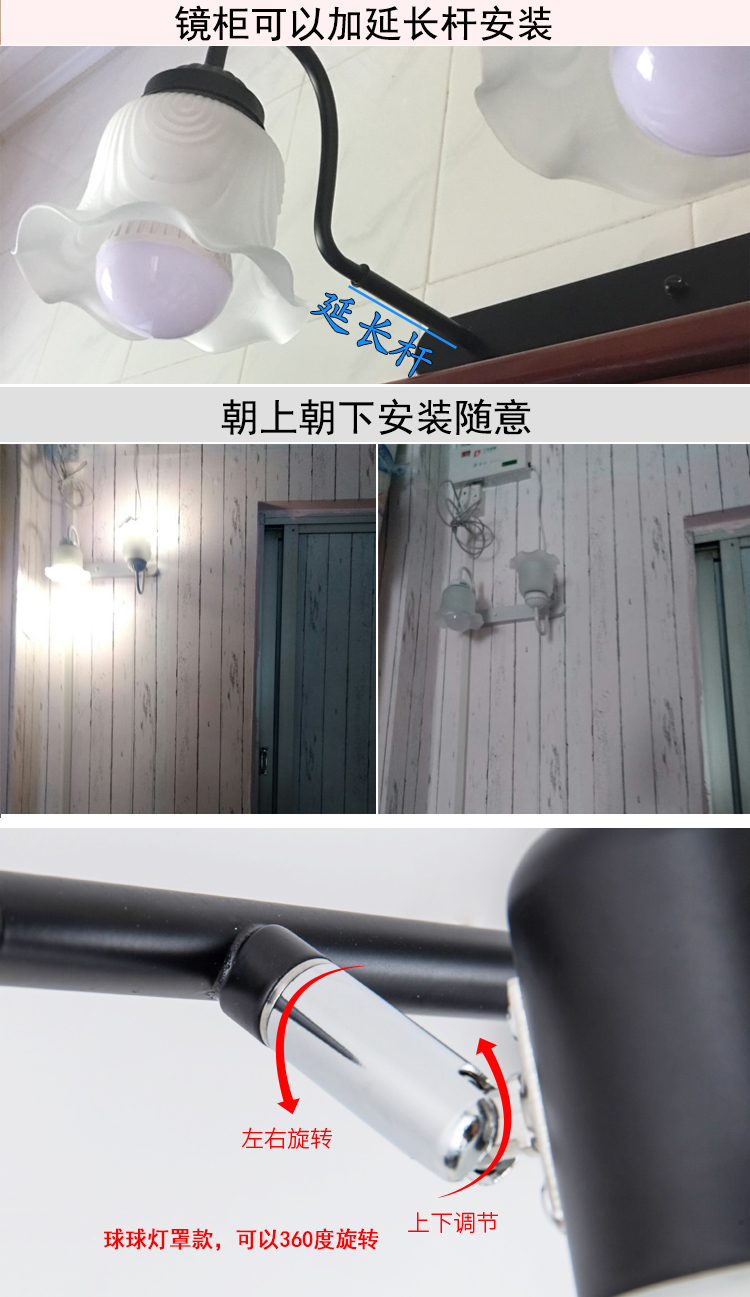 9C 교체 가능한 전구 거울 헤드 라이트 위생 화장실 빗 화장품 거울 캐비닛 현대 간단한 침실 벽 램프 벽 램프 무료